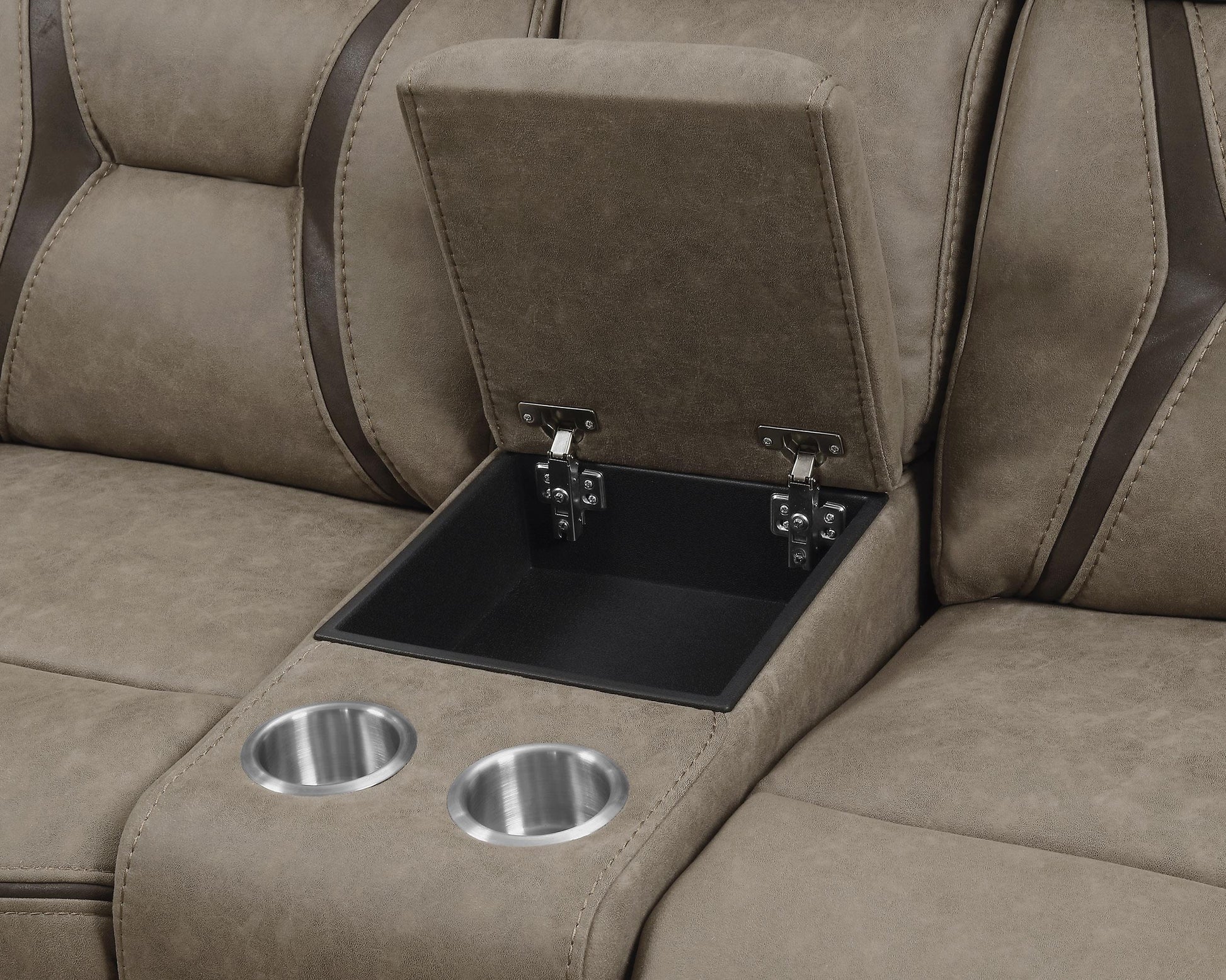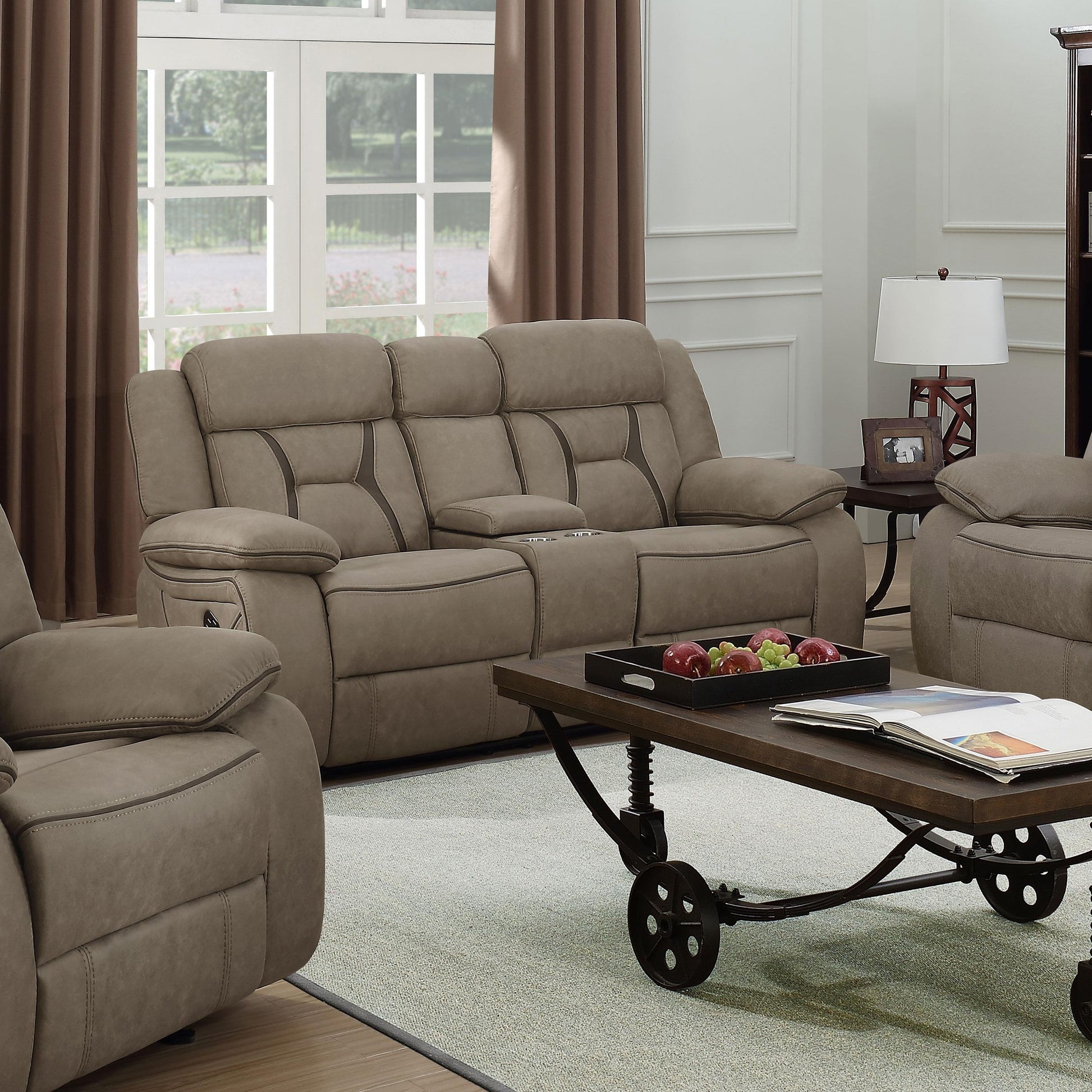 Higgins Pillow Top Arm Motion Loveseat with Console – Tan