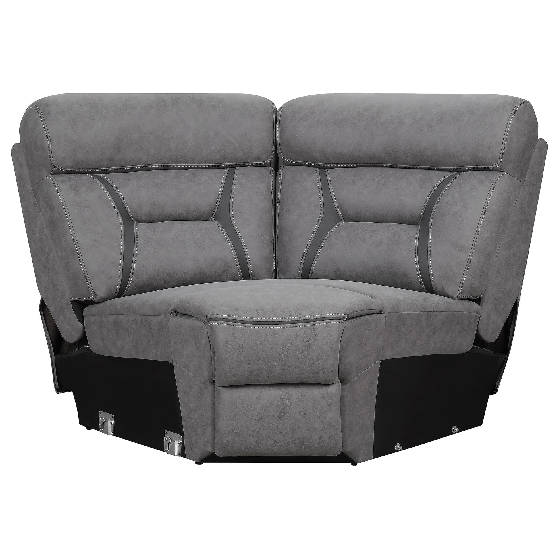 - Contemporary wedge silhouette finished in soft grey upholstery