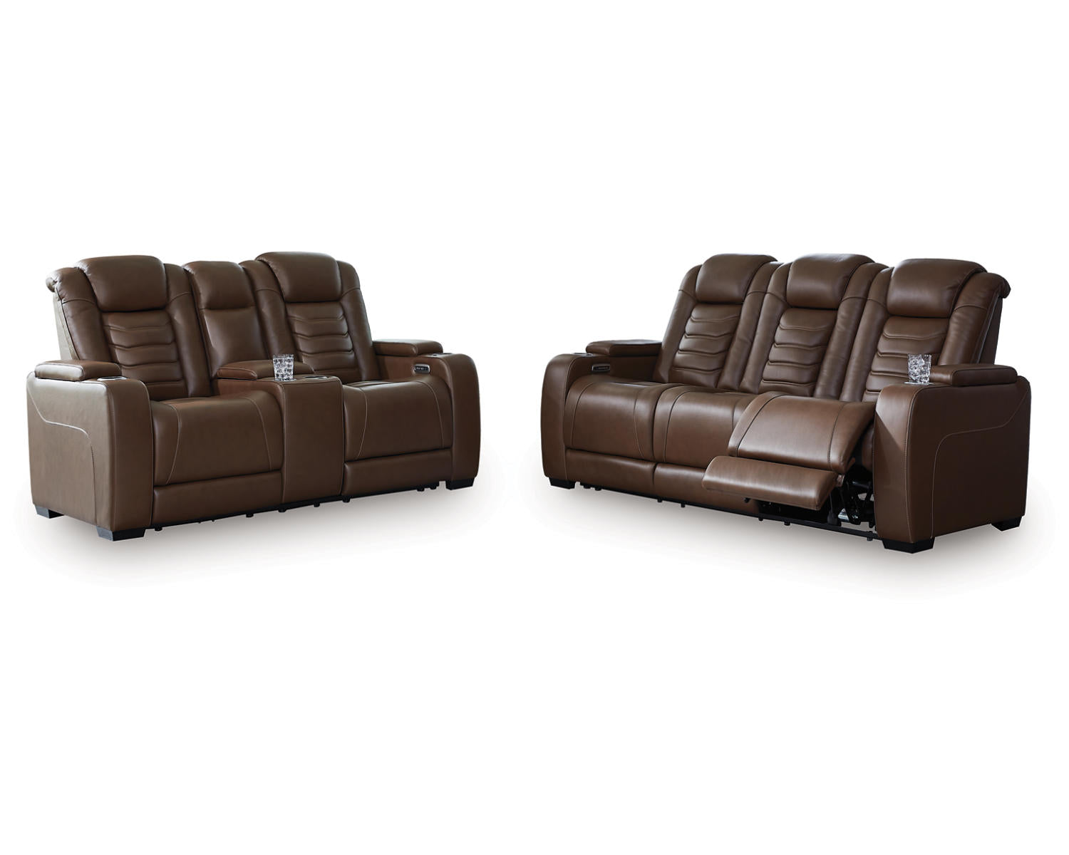 High Impact Power Reclining Sofa and Loveseat - Tobacco