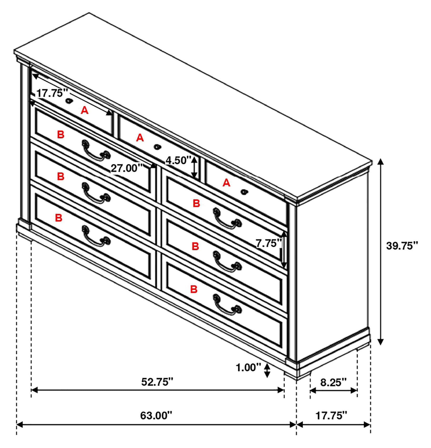 Meet the Hillcrest 9-drawer Dresser in Distressed White, a reliable storage solution for bedrooms that need organization with style. Crafted for busy homes, this dresser blends timeless charm with practical storage space. Its nine drawers and soft, distressed white finish make it a versatile centerpiece for traditional, farmhouse, or modern interiors.