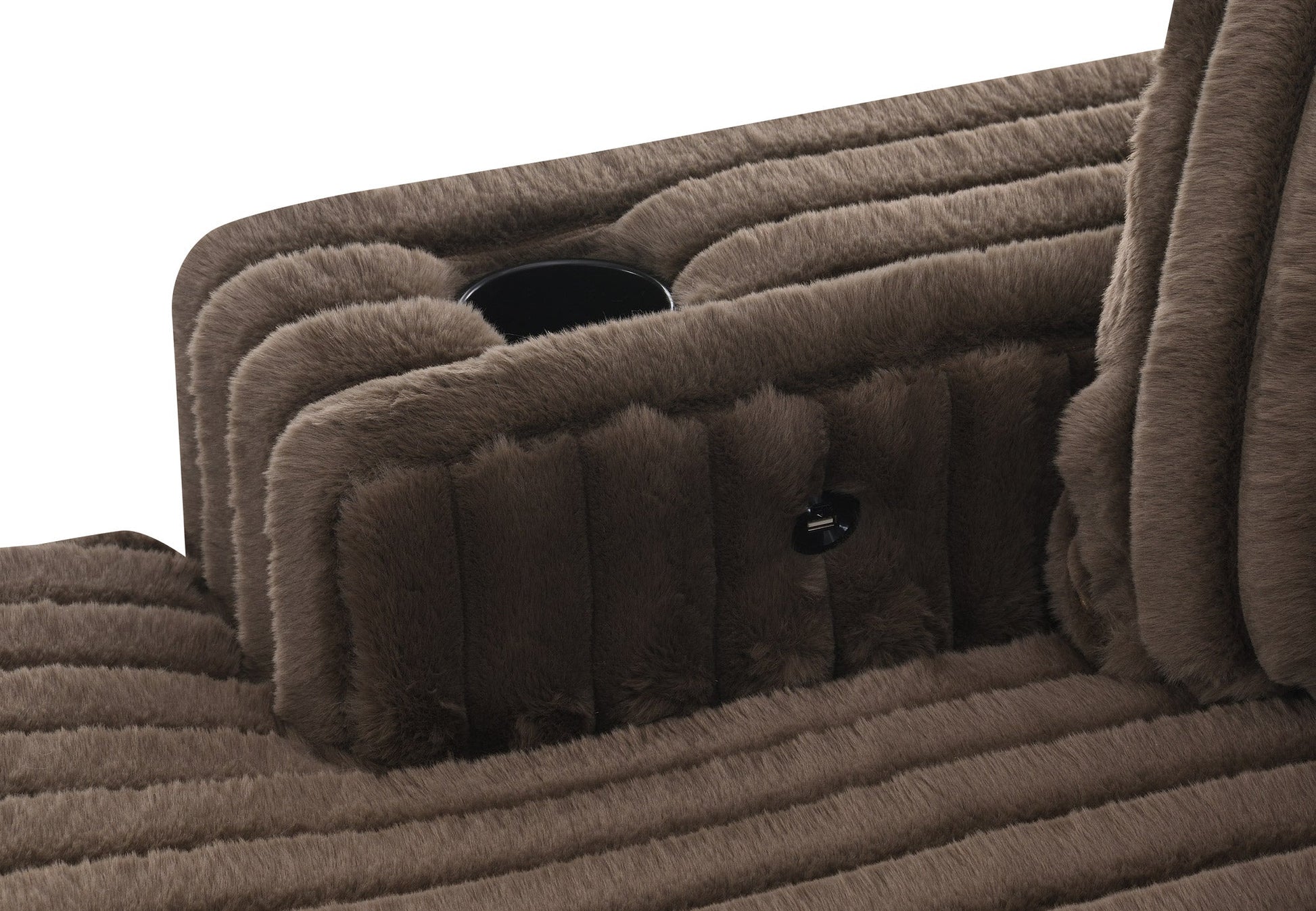 - Ribbed, textured velvet upholstery in a rich brown tone