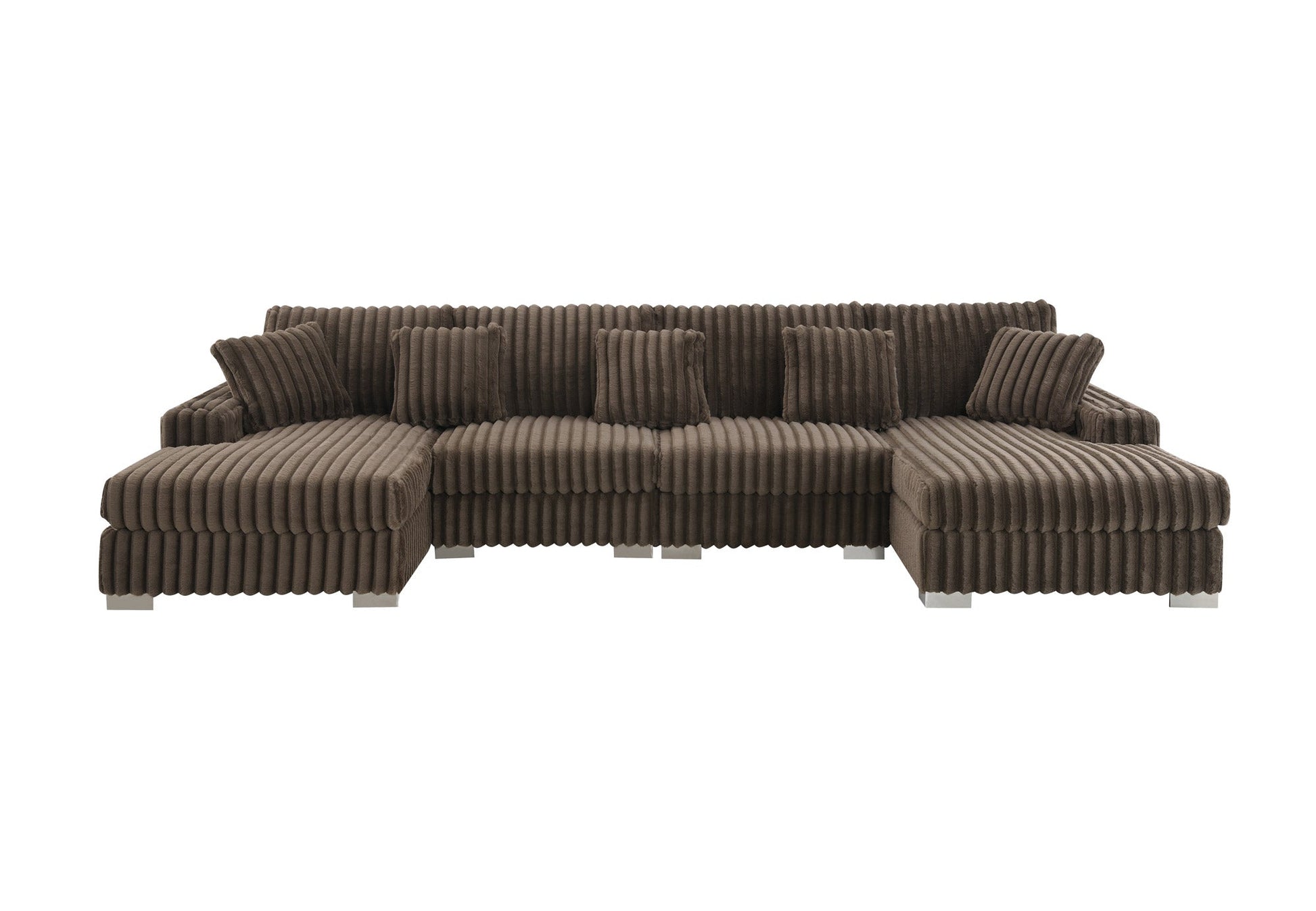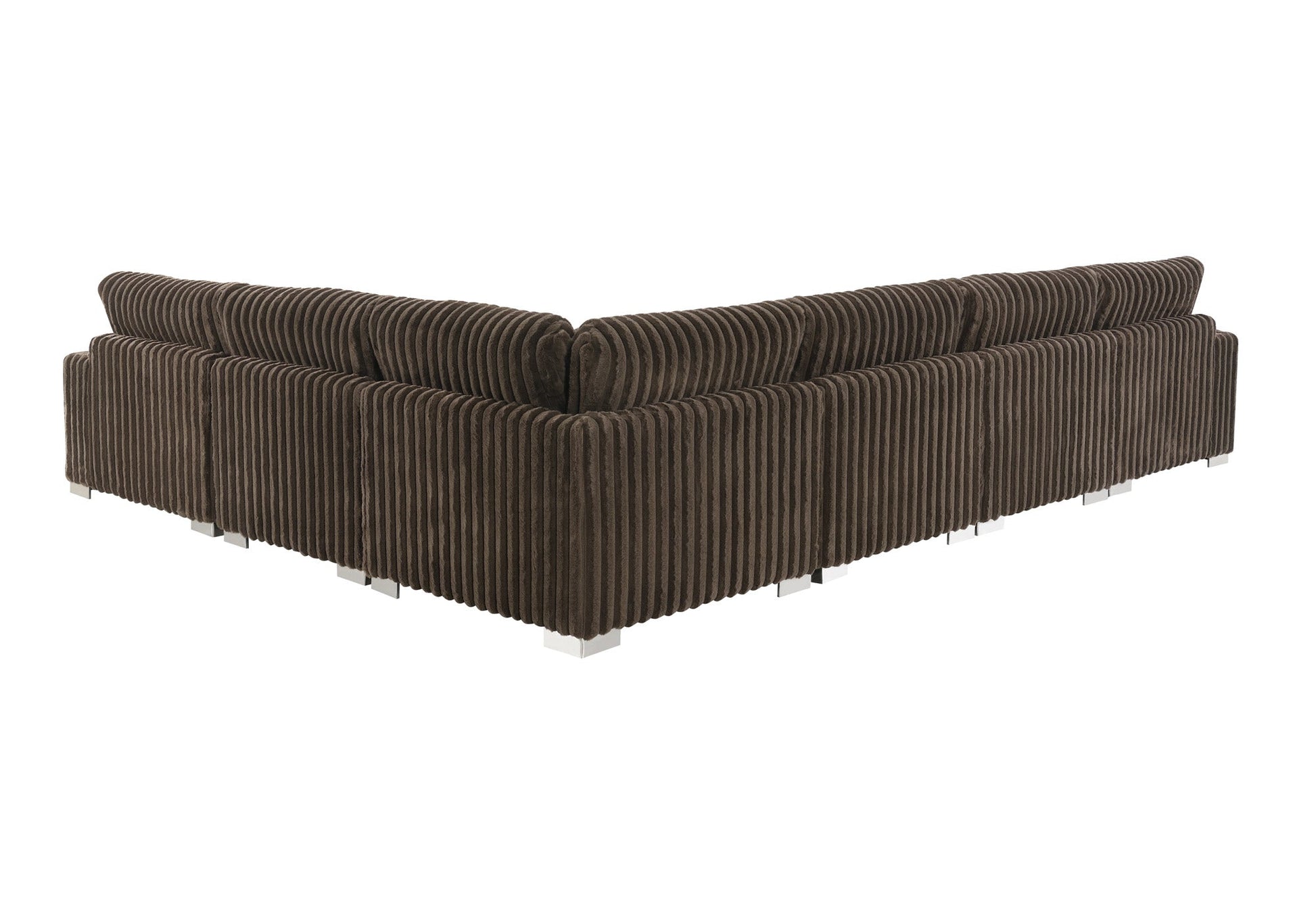 Introducing the Hilton Velvet Sectional, a modern, plush sofa designed for living rooms that crave comfort and style. Its rich brown velvet with ribbed texture brings warmth and sophistication, while the L-shaped configuration and extended chaise invite lounging, movie nights, and social gatherings.