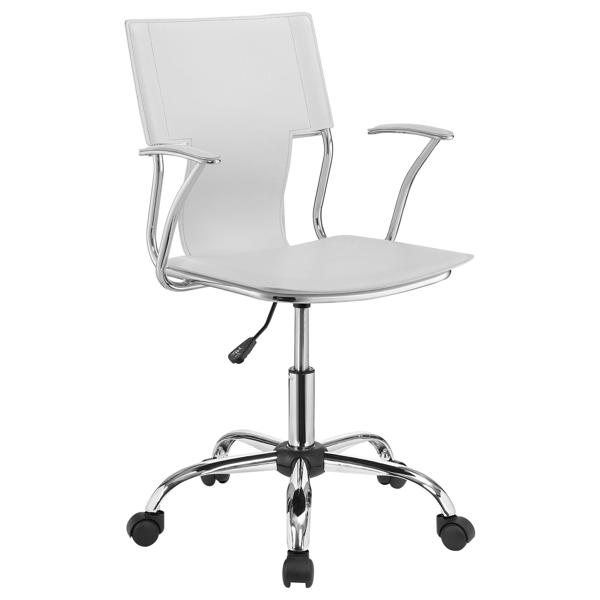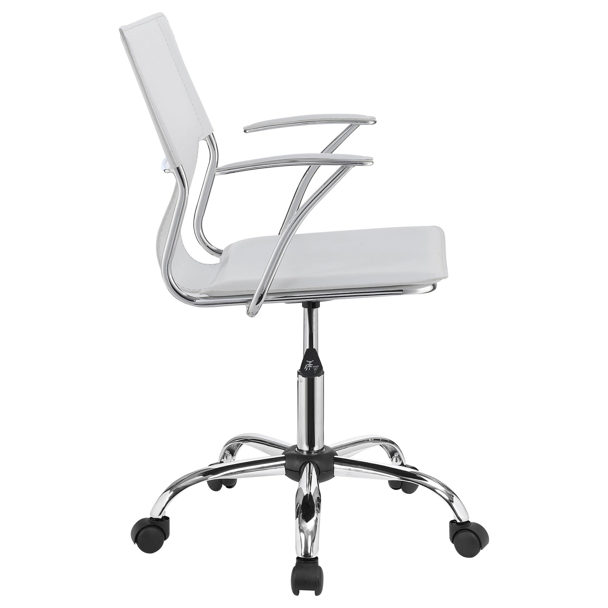 Meet the Himari—an adjustable, white faux leather office desk chair designed for modern workspaces. It’s ideal for home offices, small studios, and desks that value a clean, professional look. Enjoy easy height adjustment and a comfortable seating experience throughout long work sessions.