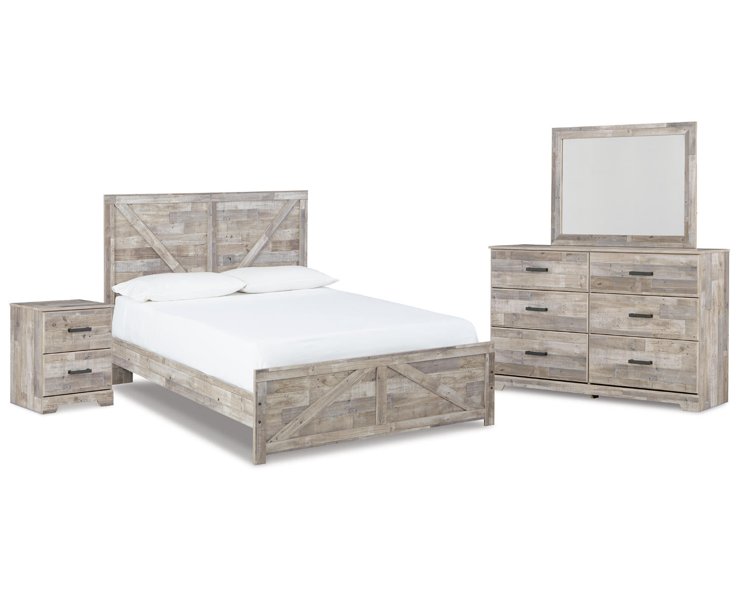 Hodanna Queen Crossbuck Panel Bed, Dresser, Mirror and Nightstand