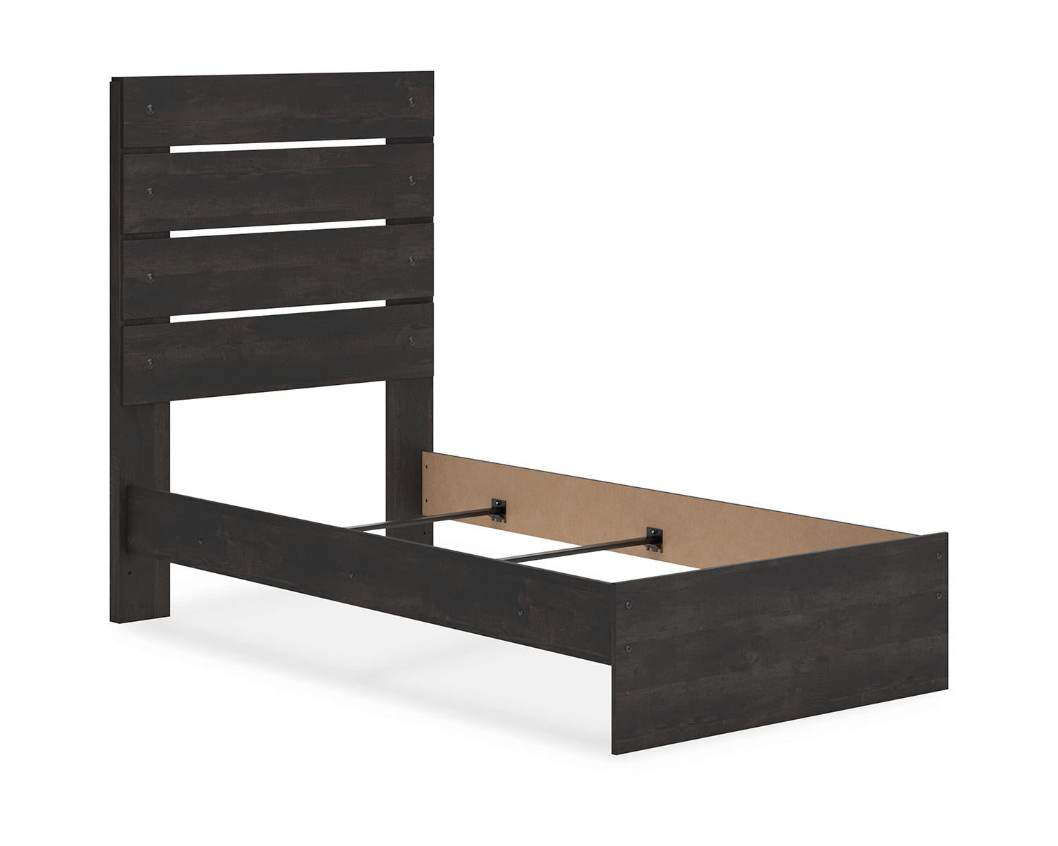 Meet the Hollivern Twin Panel Bed—the essential frame for compact bedrooms that need clean, modern style and dependable everyday use. Sized for a twin mattress, it’s an ideal choice for kids' rooms, guest spaces, or shared bedrooms. The dark gray finish provides a versatile backdrop that stays polished through changing decor.