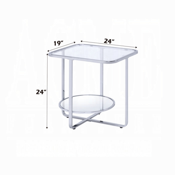 The Hollo End Table is a modern, versatile accent piece designed for living rooms, bedrooms, or entryways. It combines a glass top with a chrome-finished metal frame for a sleek, reflective look that keeps spaces feeling open. With a compact footprint of 24"W x 19"D x 24"H, it fits neatly beside sofas, chairs, or beds while delivering practical surface space and style.