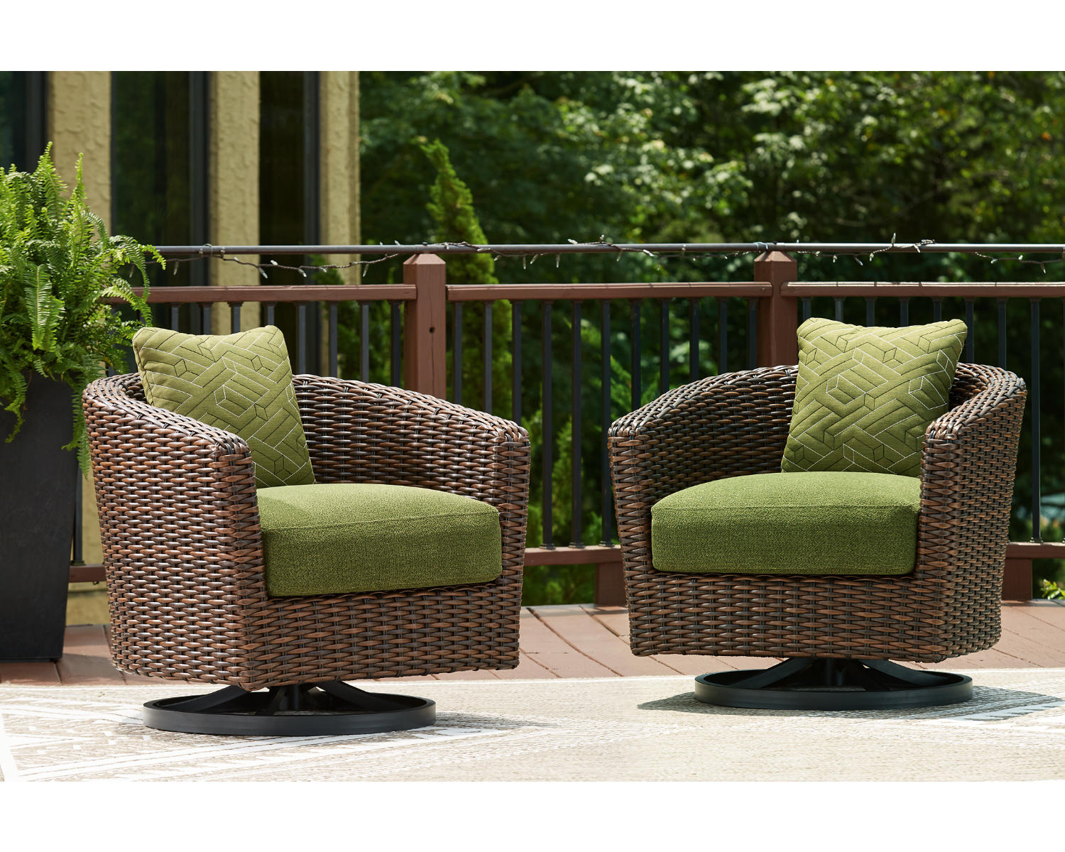 Meet the Horizon Hall Outdoor Swivel Lounge Chair with Cushion — a versatile seating solution for outdoor spaces. Designed for patios, decks, and gardens, it pairs a smooth swivel with a welcoming cushion for relaxed, casual lounging. Its Brown/Green colorway adds a touch of natural style to any outdoor setting.