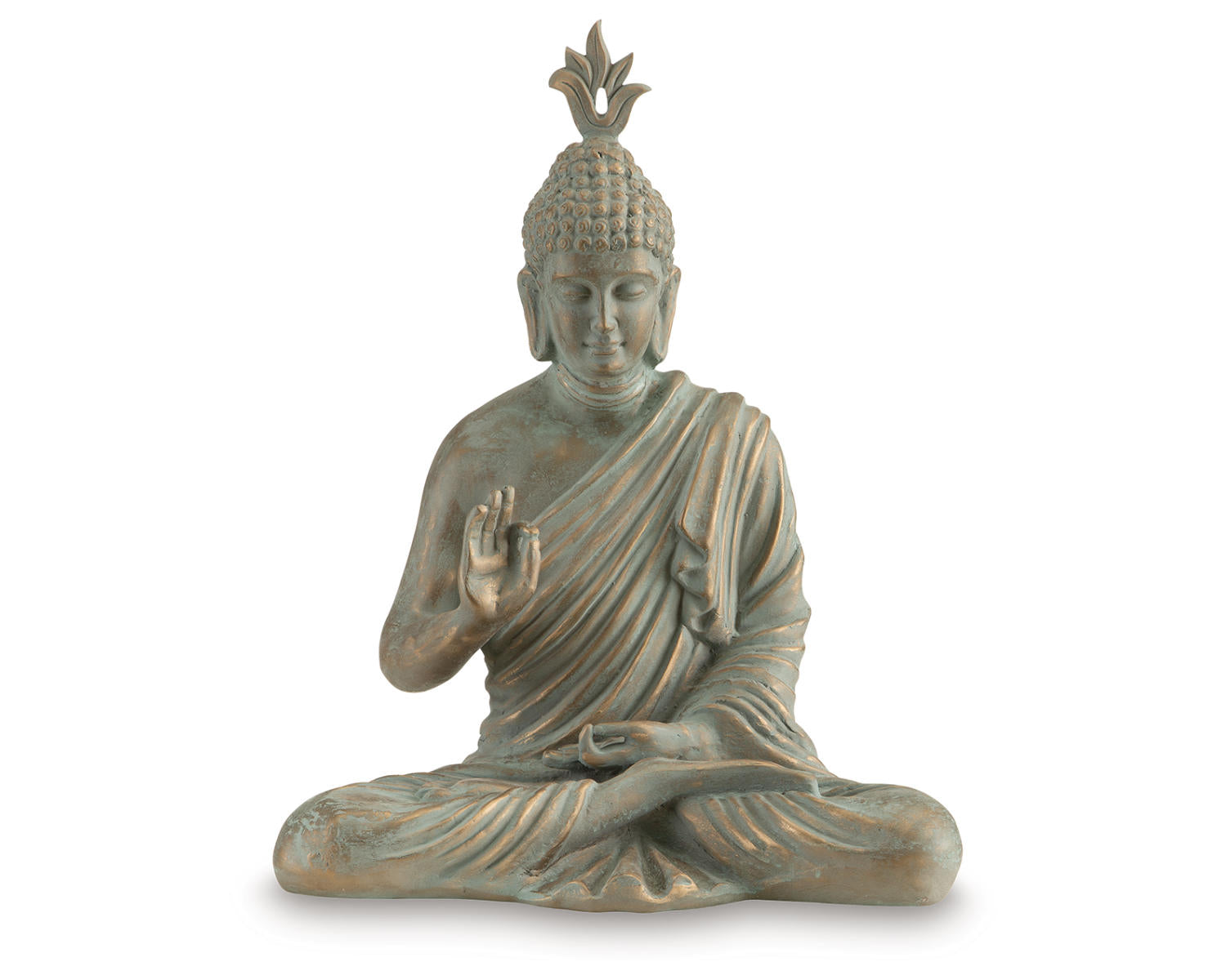 - Verigris Patina finish with rich verdigris tones that enhance its classic sculpture aesthetic.