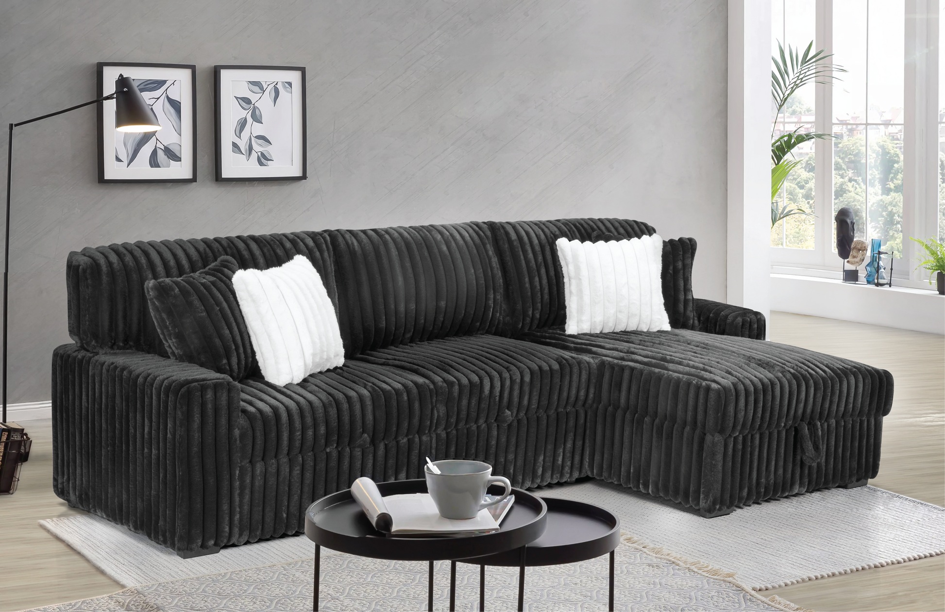 The HT Vermont I Sectional is a versatile and stylish choice made by Home Treasures. This 2 piece sectional includes one chaise, with your choice left or right facing. Available in Beige Corduroy or Black Corduroy. This cozy piece can be paired with a matching storage ottoman, to enhance comfort and style. Whether it’s for cozy gatherings or relaxing alone, the Home Treasures Vermont Sectional offers elegance, flexibility, and comfort in every setup.