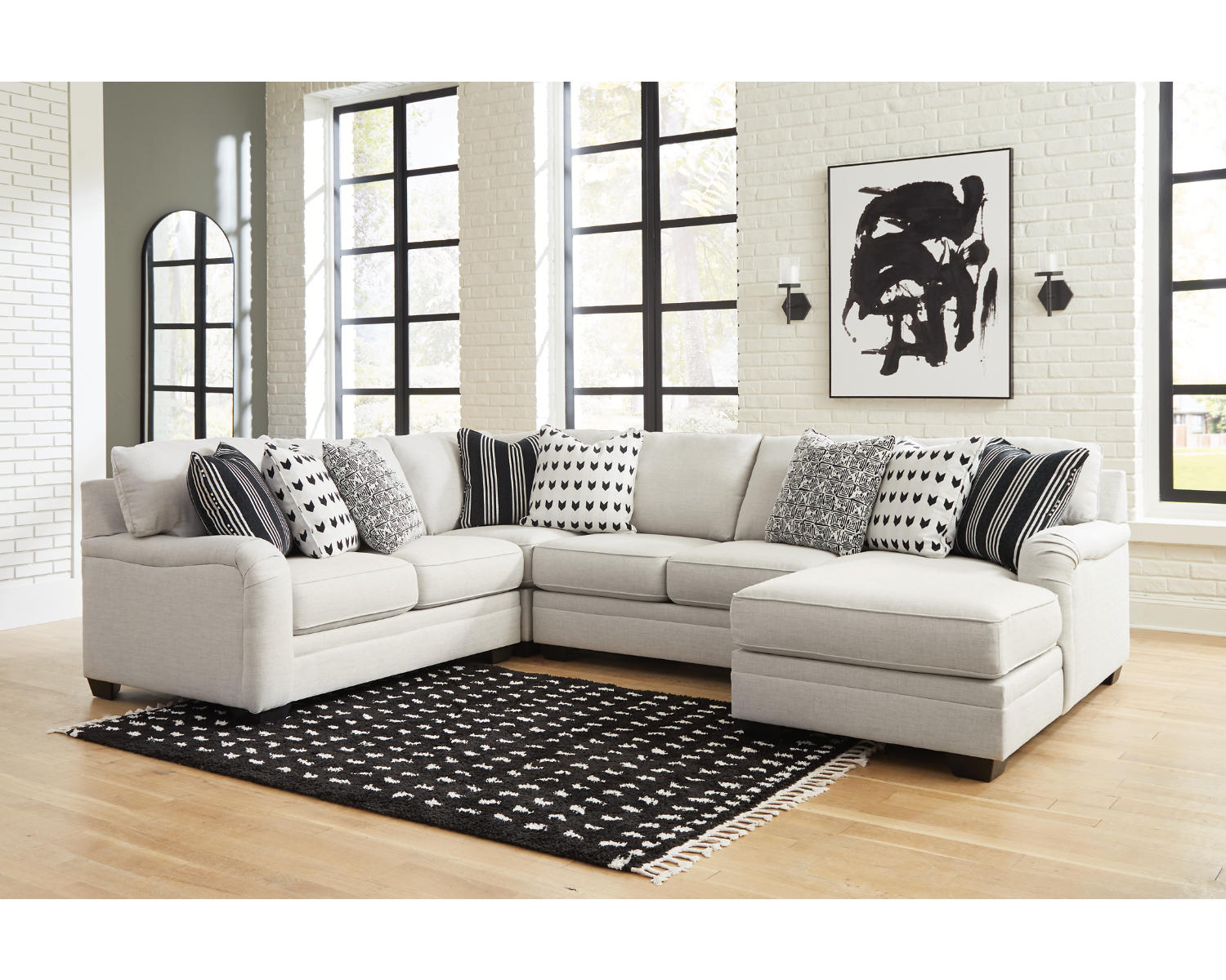 Meet the Huntsworth 4-Piece Sectional with Chaise in Dove Gray—an adaptable, comfortable addition designed for families, roommates, and anyone who loves flexible living room seating. Its modular layout and neutral color keep the space calm and inviting, while offering plenty of seating for gatherings or movie nights. Built for everyday use, it blends style with practicality to fit a variety of living spaces.