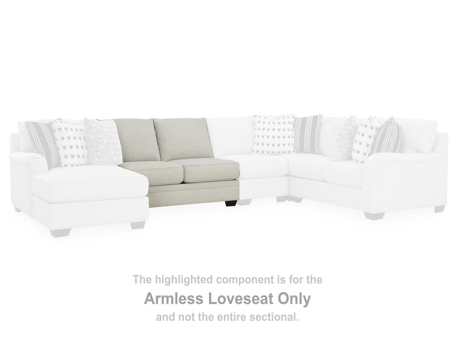 Meet the Huntsworth Armless Loveseat in Dove Gray—a compact, versatile seating option designed for modern living spaces. It’s ideal for apartments, small living rooms, or cozy corners where clean lines and comfort matter. The armless silhouette maximizes floor space while offering a welcoming place to lounge, chat, or binge-watch your favorites.