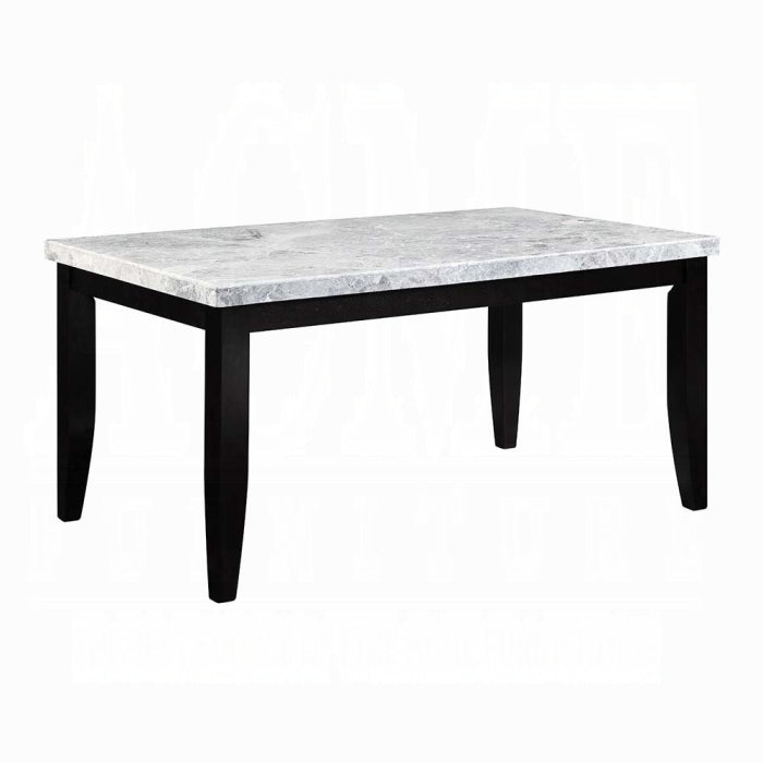 Turn your dining area into the most eye-catching area of your home with the Hussein natural marble dining table. This piece is supported by a sturdy wooden base in a black finish, creating a striking contrast with the flawless marble top. The natural marble top adds to its robust, timeless appeal, making it a centerpiece for everyday meals and elegant entertaining.