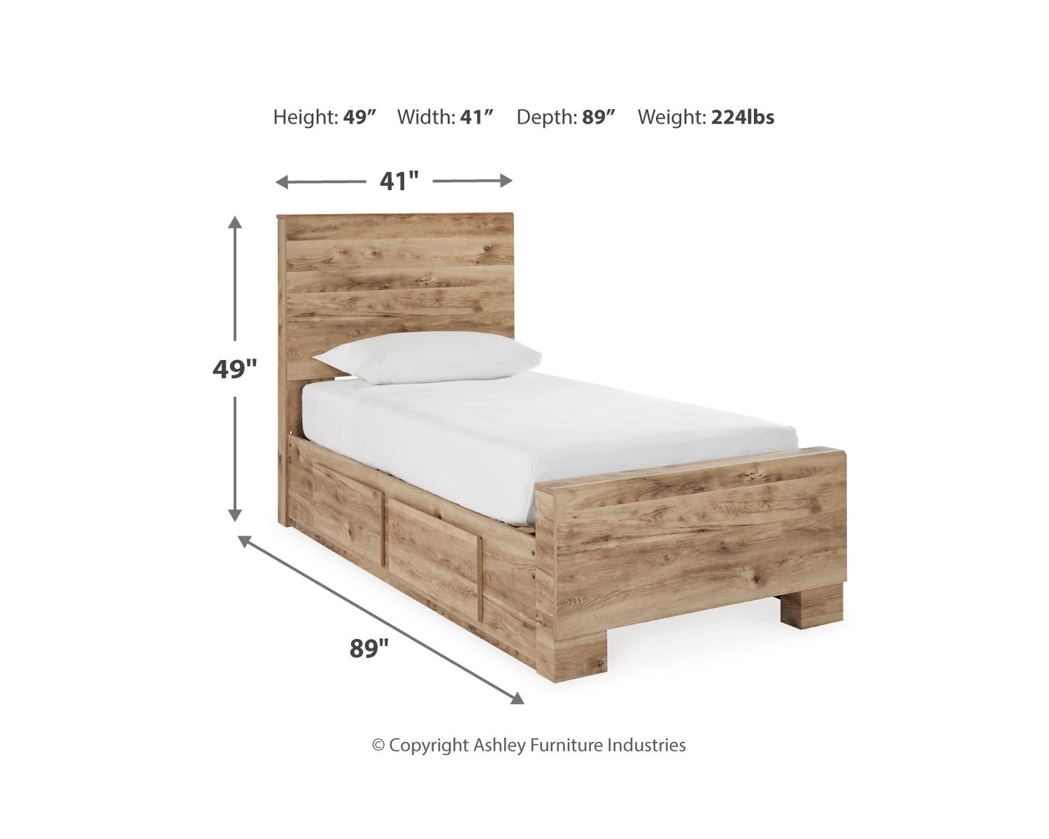 Hyanna Twin Panel Bed with 2 Side Storage, Dresser and Mirror