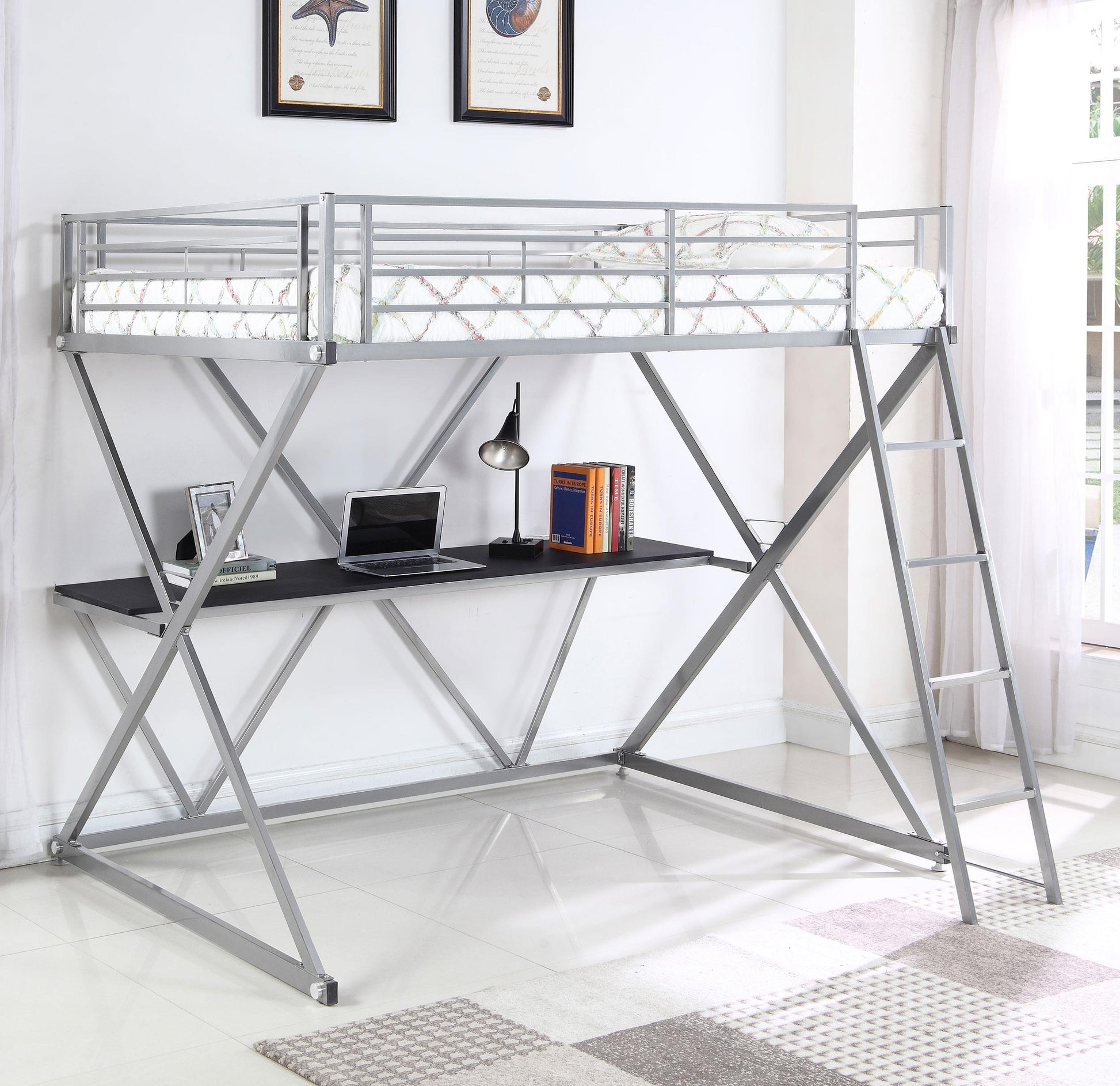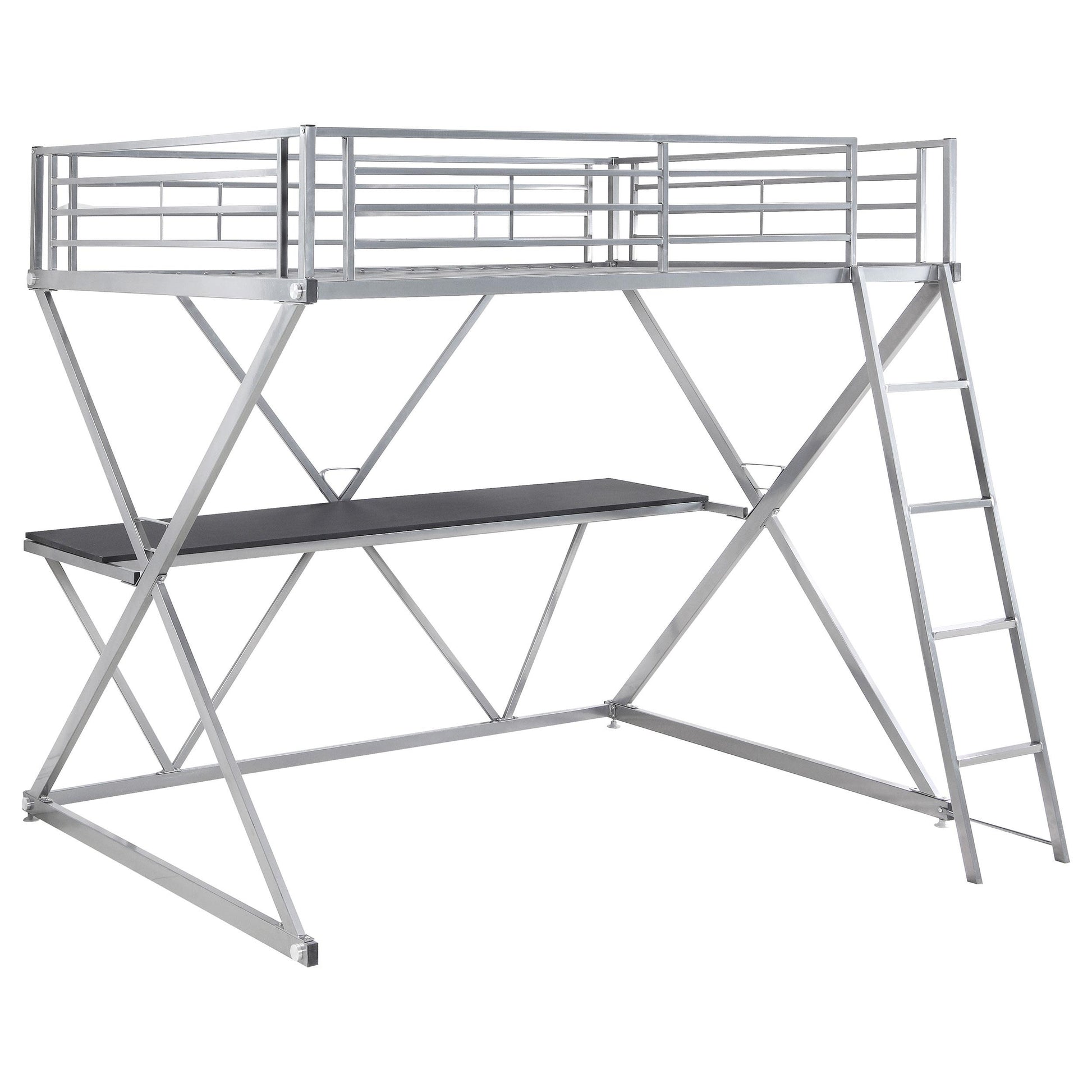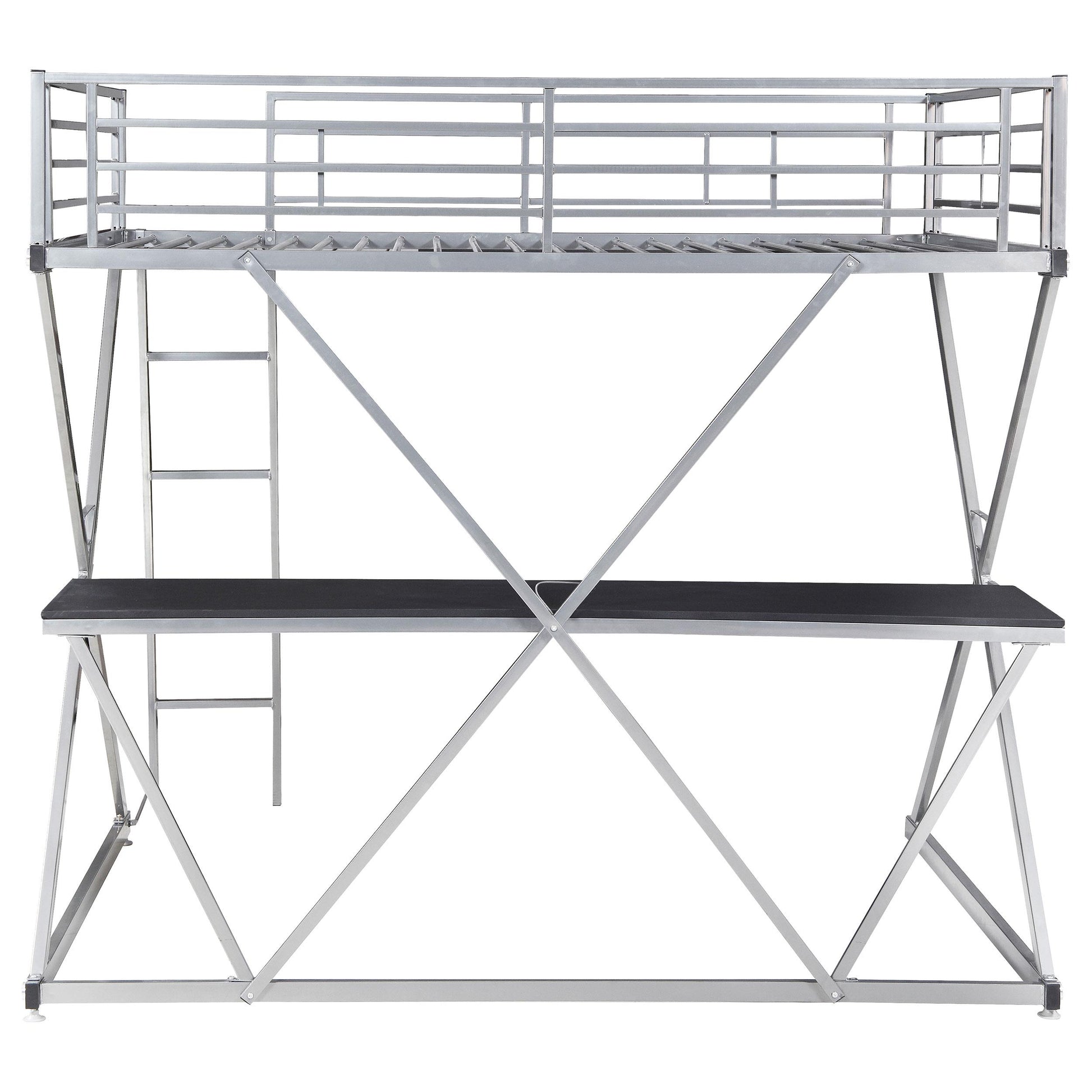 The Hyde Metal Full Workstation Loft Bed Silver combines a full-size sleeping area with a built-in workstation in a sleek, silver finish. It’s designed for bedrooms, small apartments, dorm rooms, or shared spaces where every square foot matters. This setup helps you sleep comfortably while keeping a productive workspace right at hand.