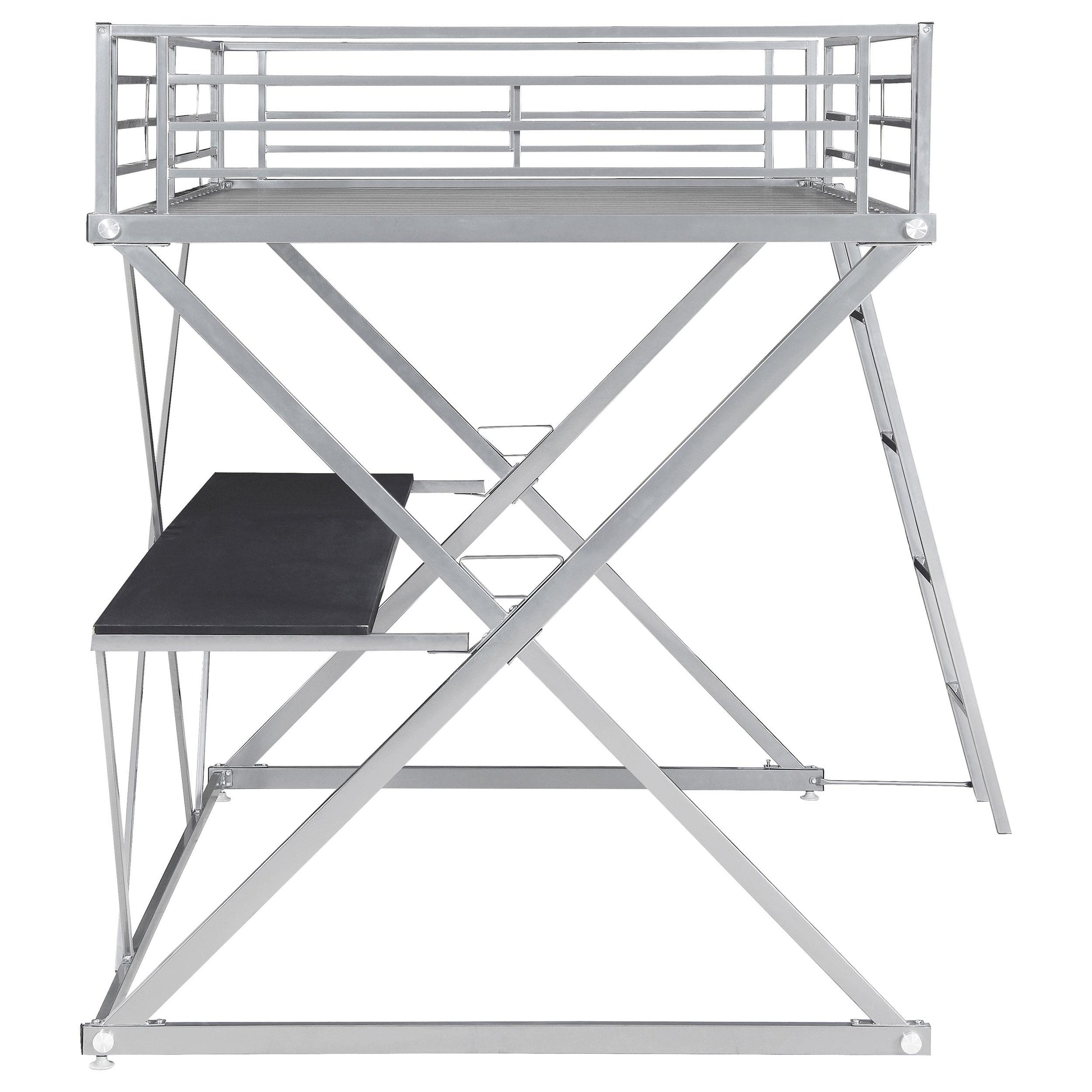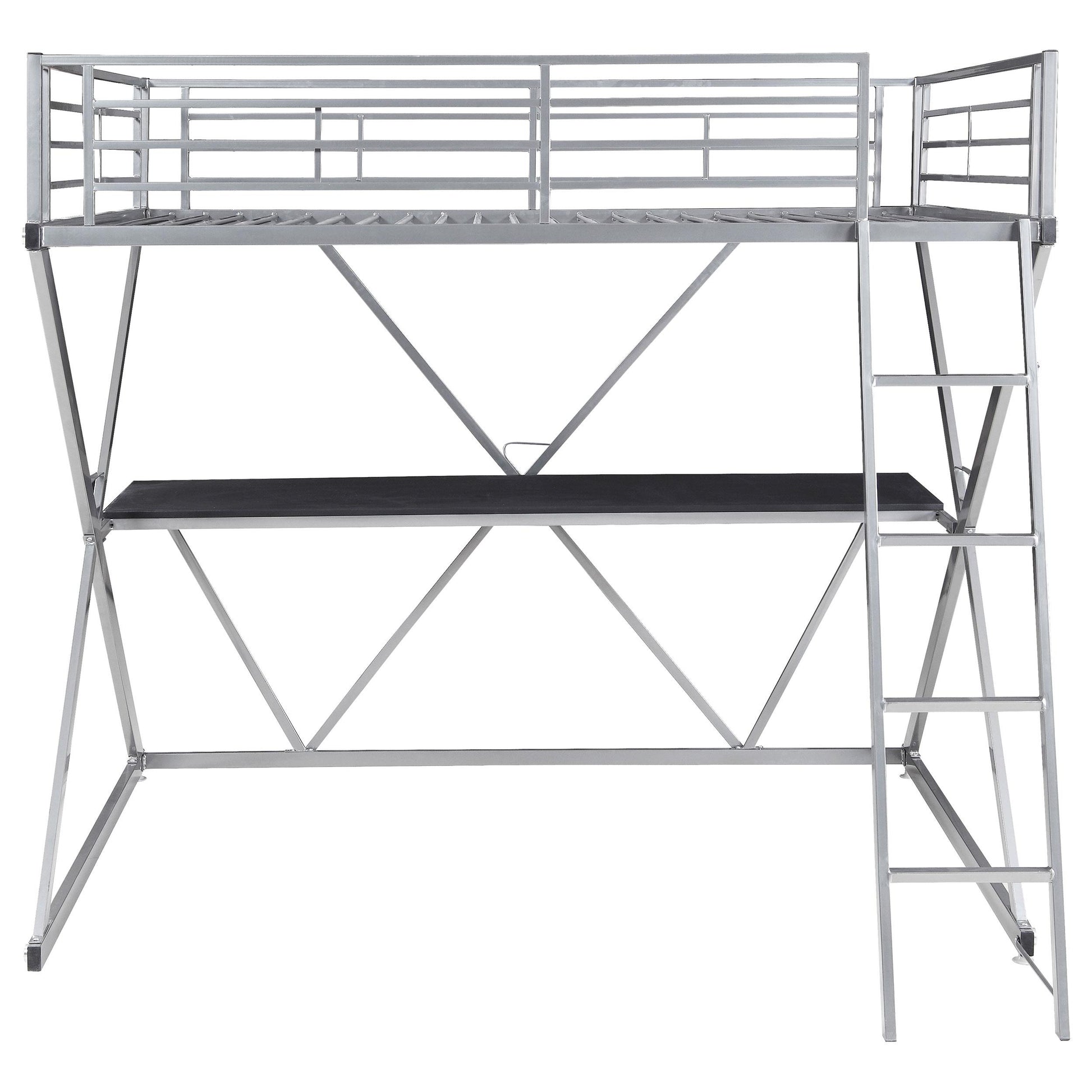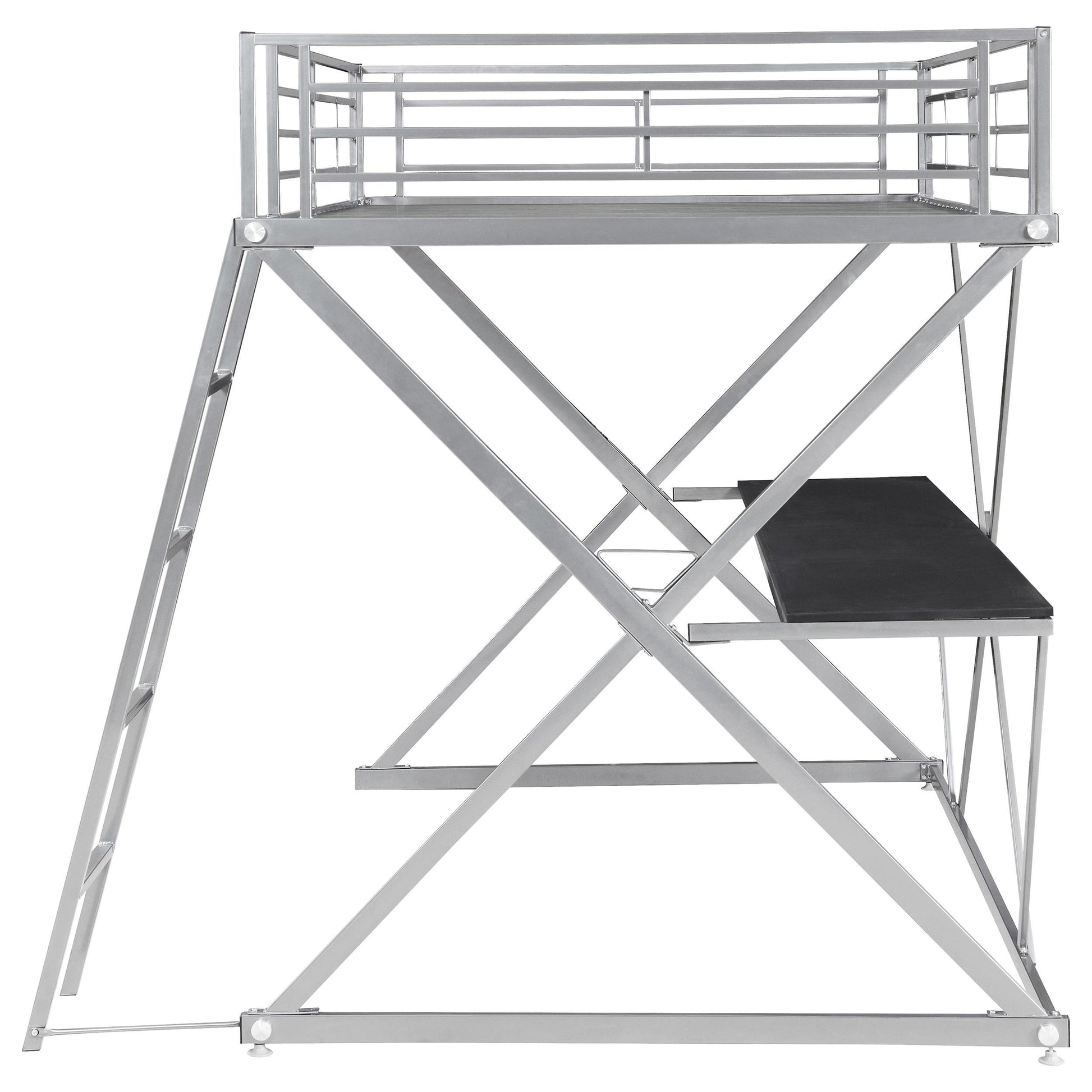 The Hyde Metal Full Workstation Loft Bed Silver combines a full-size sleeping area with a built-in workstation in a sleek, silver finish. It’s designed for bedrooms, small apartments, dorm rooms, or shared spaces where every square foot matters. This setup helps you sleep comfortably while keeping a productive workspace right at hand.