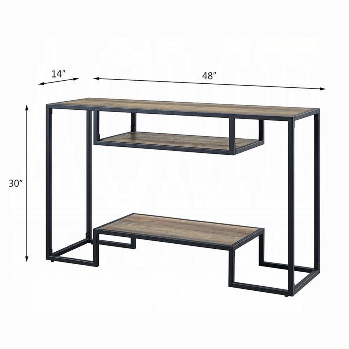 The Idella Sofa Table is a versatile two-tone accent piece designed for living rooms, entryways, and behind-the-sofa setups. It pairs a sturdy metal frame with a wood veneer top in a Rustic Oak & Black finish, delivering a refined look that works with many decors. This slim, wide table provides a reliable surface for lamps, beverages, remotes, and decor without crowding your space.