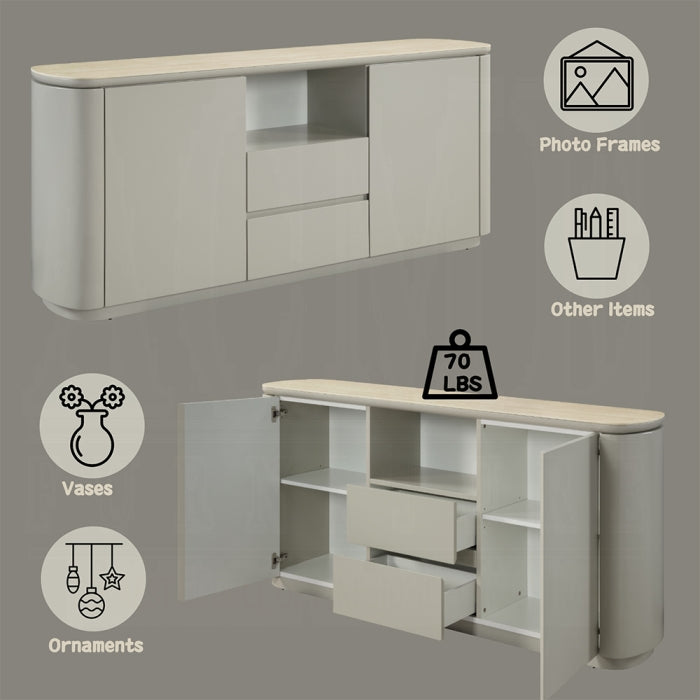 The Ingram Server is built to endure daily use with stable construction and a surface designed to resist stains and scratches, helping it maintain its serene appearance longer than many comparable pieces. With its thoughtful design and premium finish, it delivers a refined presence at a compelling price, making it a practical choice for households seeking value without compromising style.