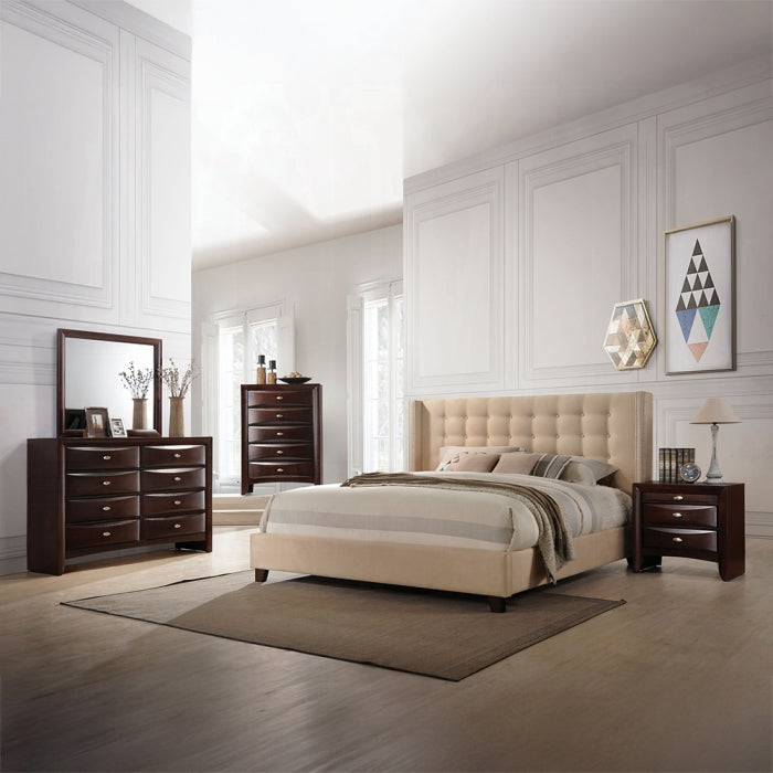 The Ireland Chest in espresso offers practical storage with a clean, classic look. This 5-drawer dresser is designed for bedrooms where space is at a premium and organization matters. With beveled fronts and sturdy hardware, it blends timeless style with everyday function.