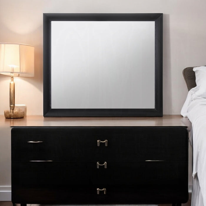 The Ireland contemporary mirror in Black is the perfect accent for your master bedroom. The Ireland collection features a contemporary feel, and this mirror helps small areas appear larger and more brightly lit. Crafted with a blend of wood, veneer, and glass, it offers a clean, modern silhouette that complements a range of decors.
