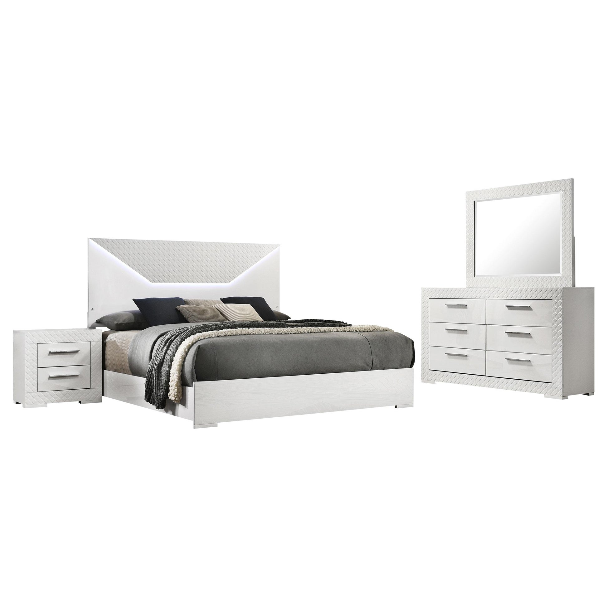 Built to withstand daily use, the Ives set combines durability with a competitive price. The high-gloss finish and sturdy construction resist scratches and maintain its bright, pristine appearance longer than many standard bedroom ensembles. Because this is a complete 4-piece set, you get a cohesive aesthetic and streamlined setup at a compelling value, helping you refresh your bedroom with less effort and less expense.
