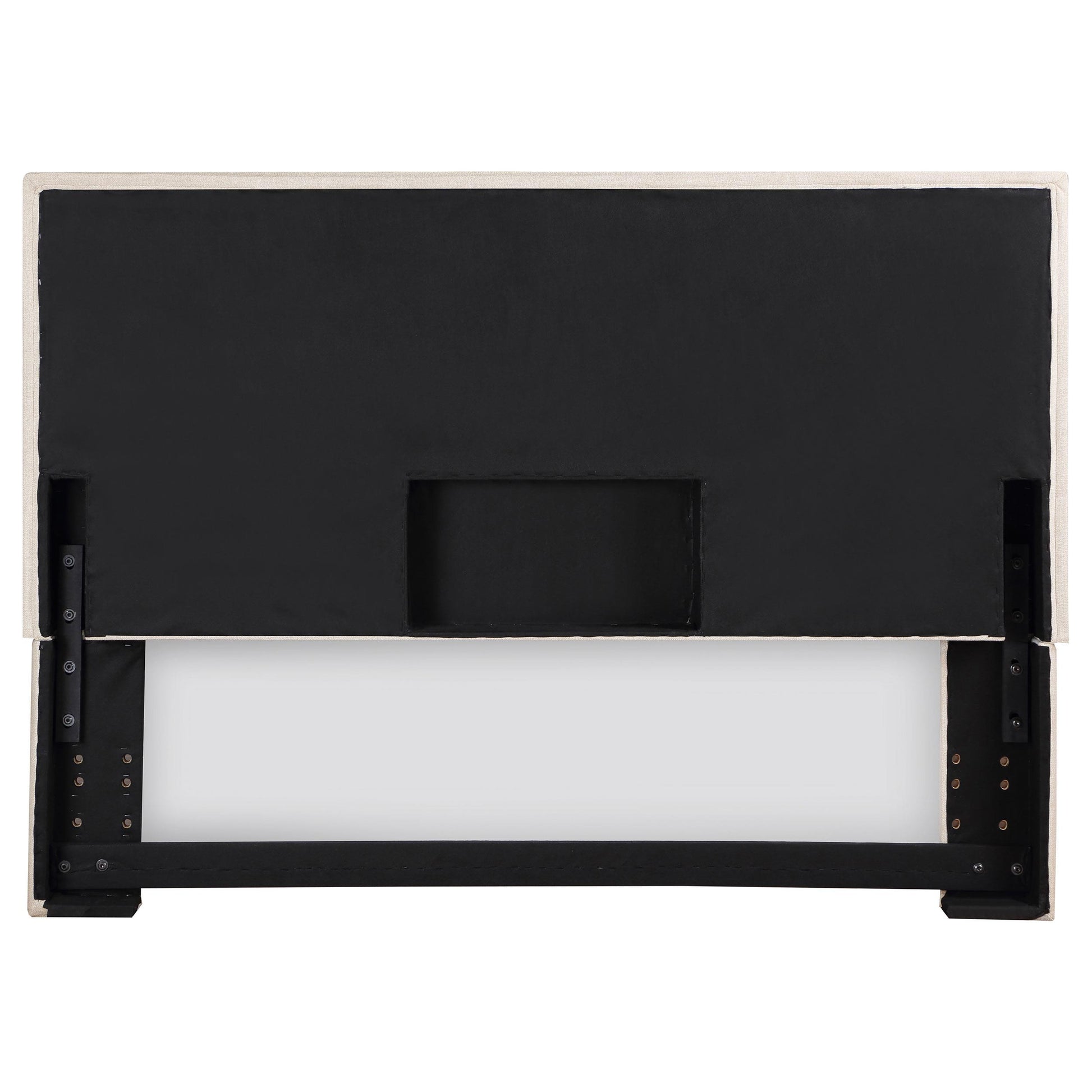 Refresh your bedroom with the Izzy Upholstered King Panel Headboard in Sand. This king-size headboard blends a clean panel silhouette with plush, inviting upholstery to add comfort and style to your bed. Designed for modern bedrooms, it pairs easily with a variety of bed frames and décor palettes.