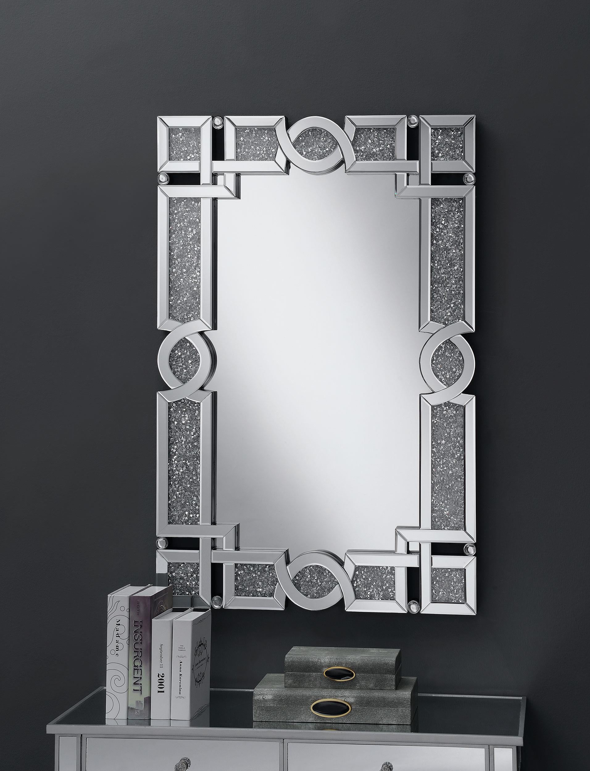 Jackie 32 x 47 Inch Acrylic Crystal Frame Wall Mirror Silver