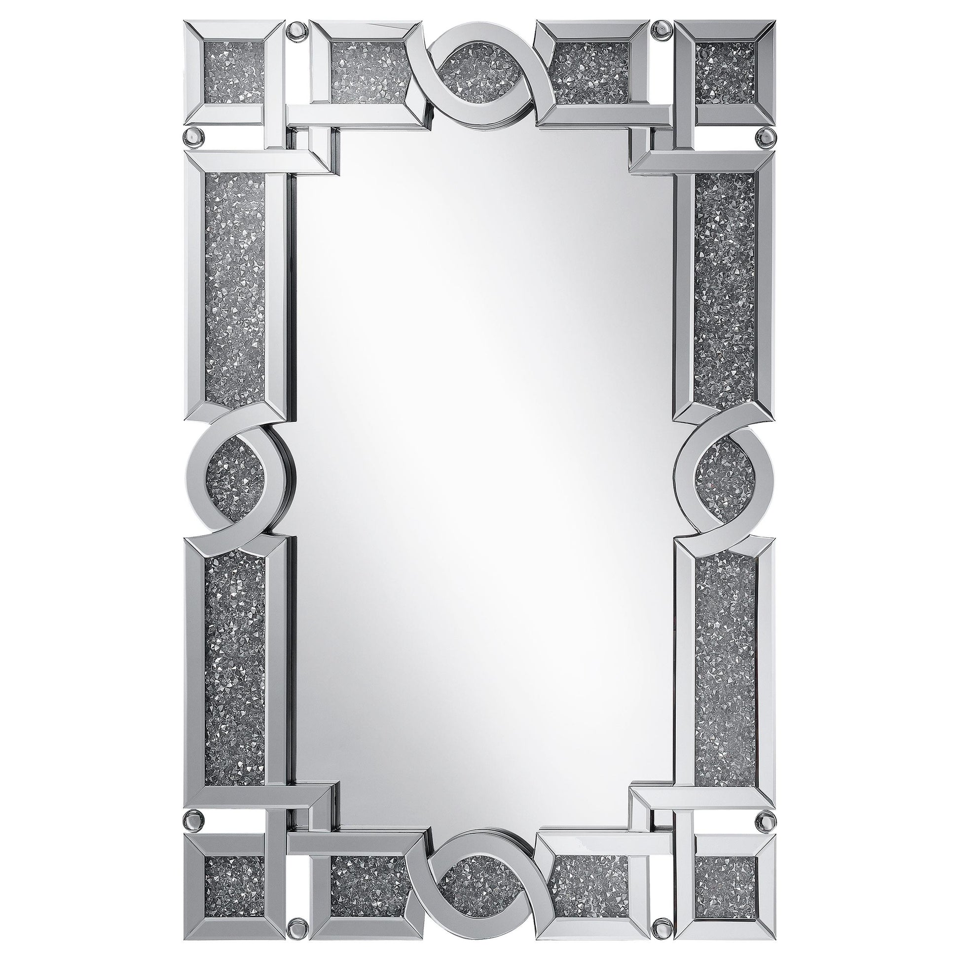 Meet Jackie, a statement wall mirror crafted with a silver acrylic crystal frame. Its expansive 32 by 47 inch reflective surface enhances light and space in living rooms, hallways, bedrooms, or bathrooms. This modern piece pairs clean lines with a touch of sparkle for a versatile focal point in any decor.