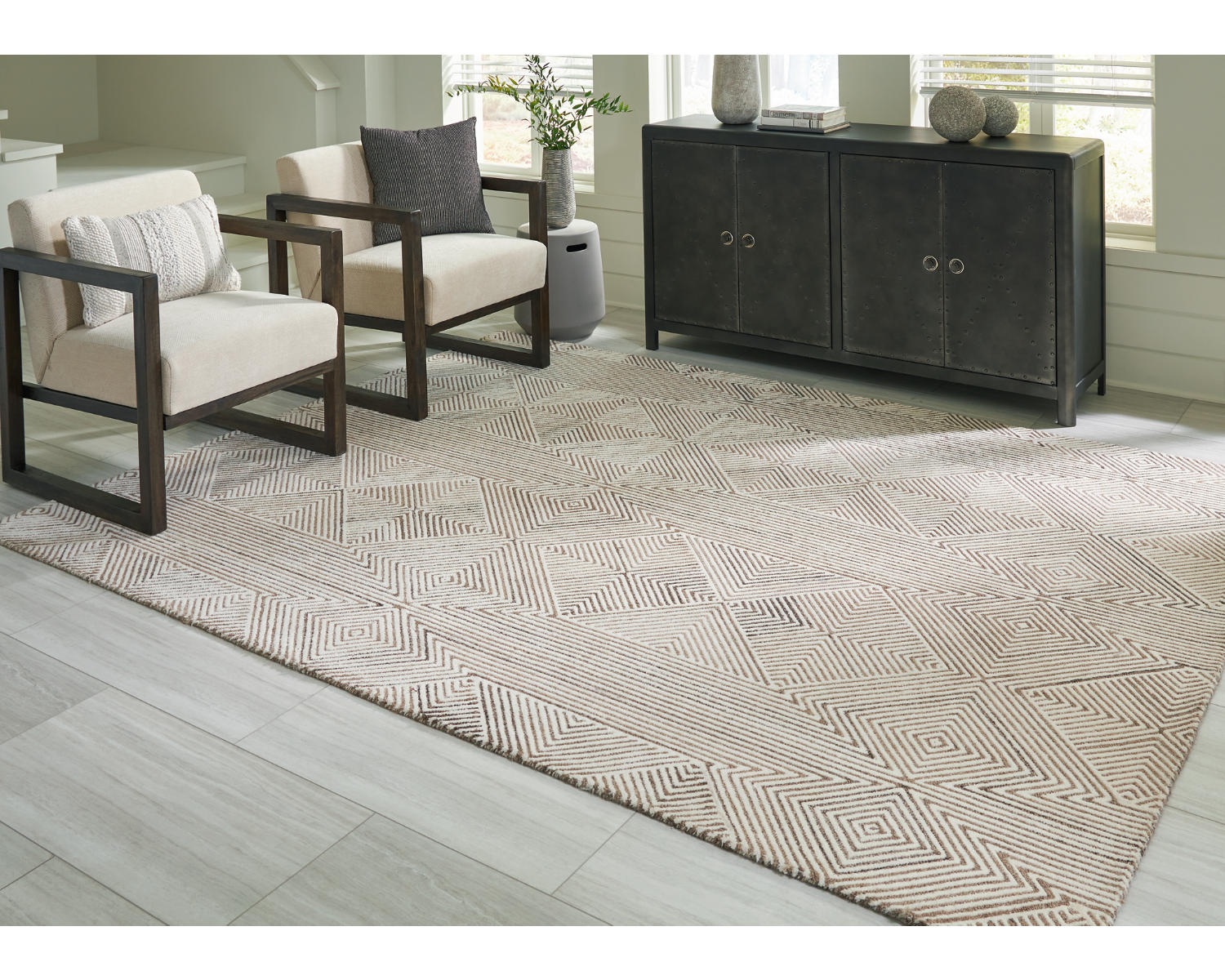 The Jadott 8' x 10' Rug delivers a generous footprint with a warm beige and brown palette, ideal for anchoring living rooms, family spaces, or open-plan layouts. Its neutral tones complement a wide range of furniture and decor, making it easy to layer with sofas, coffee tables, and seating arrangements. This large area rug brings comfort underfoot and helps define gathering spaces with a timeless, versatile look.