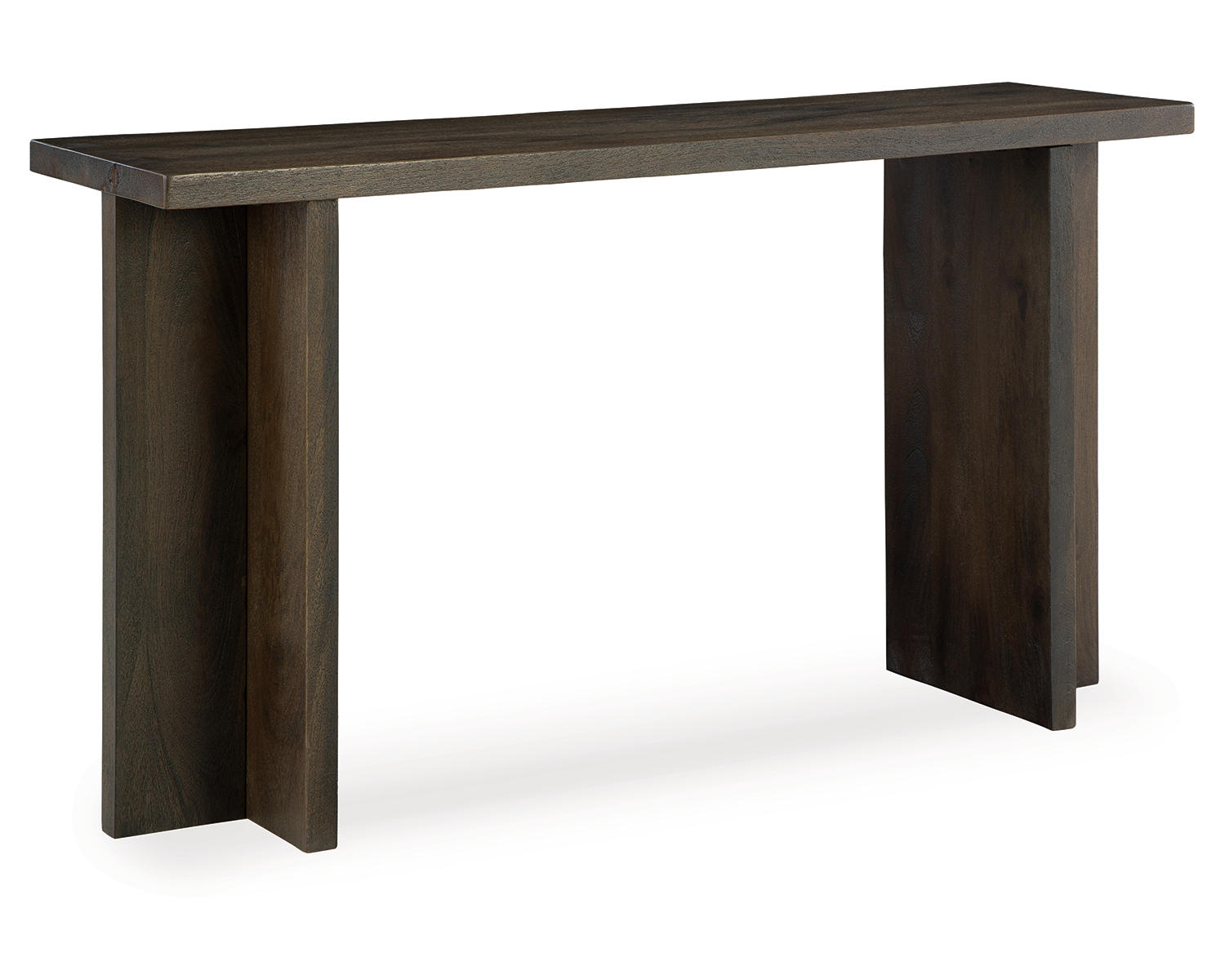 The Jalenry Console Sofa Table offers a versatile surface for living rooms, entryways, and hallways. Its grayish brown finish adds warmth and a modern touch to a wide range of décors. Designed to complement sofas and seating areas, this piece blends form and function for everyday use.