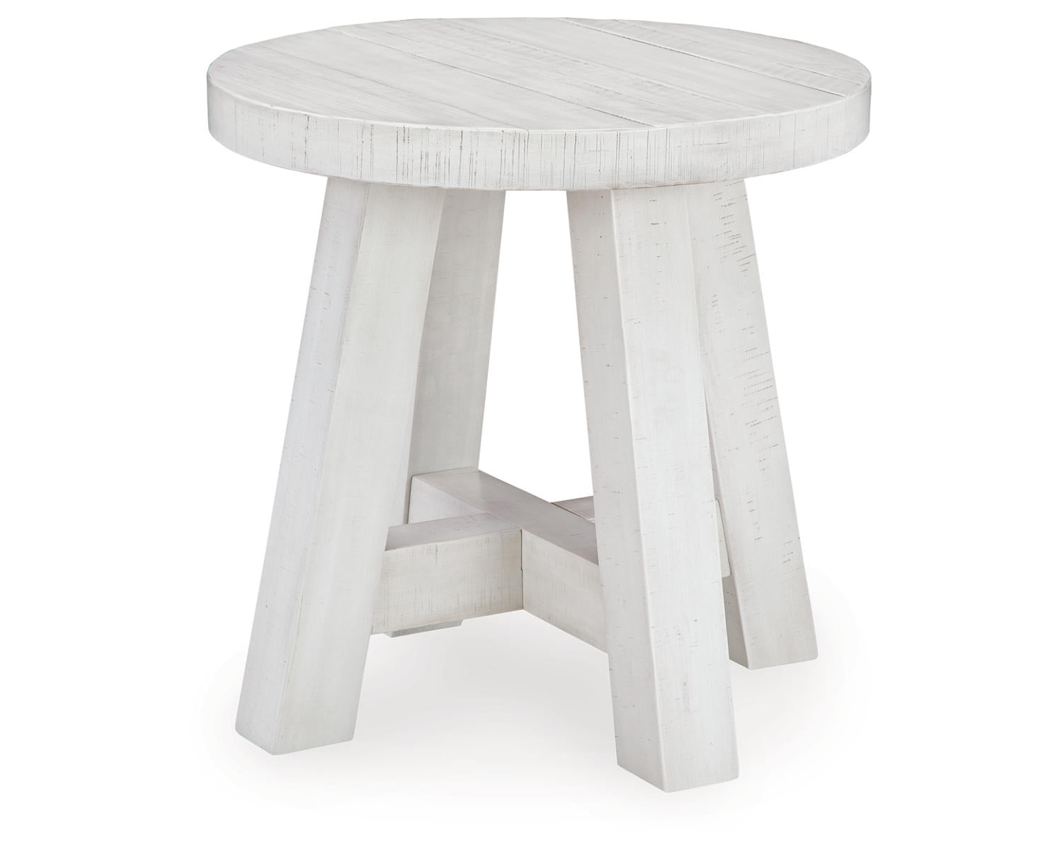 Meet the Jallison End Table, a compact round side table designed for living rooms, bedrooms, or entryways. Its off-white finish and clean, modern lines blend with a wide range of decors while keeping essentials within easy reach. Perfect for cups, lamps, and small decor, it adds a touch of understated elegance to any space.