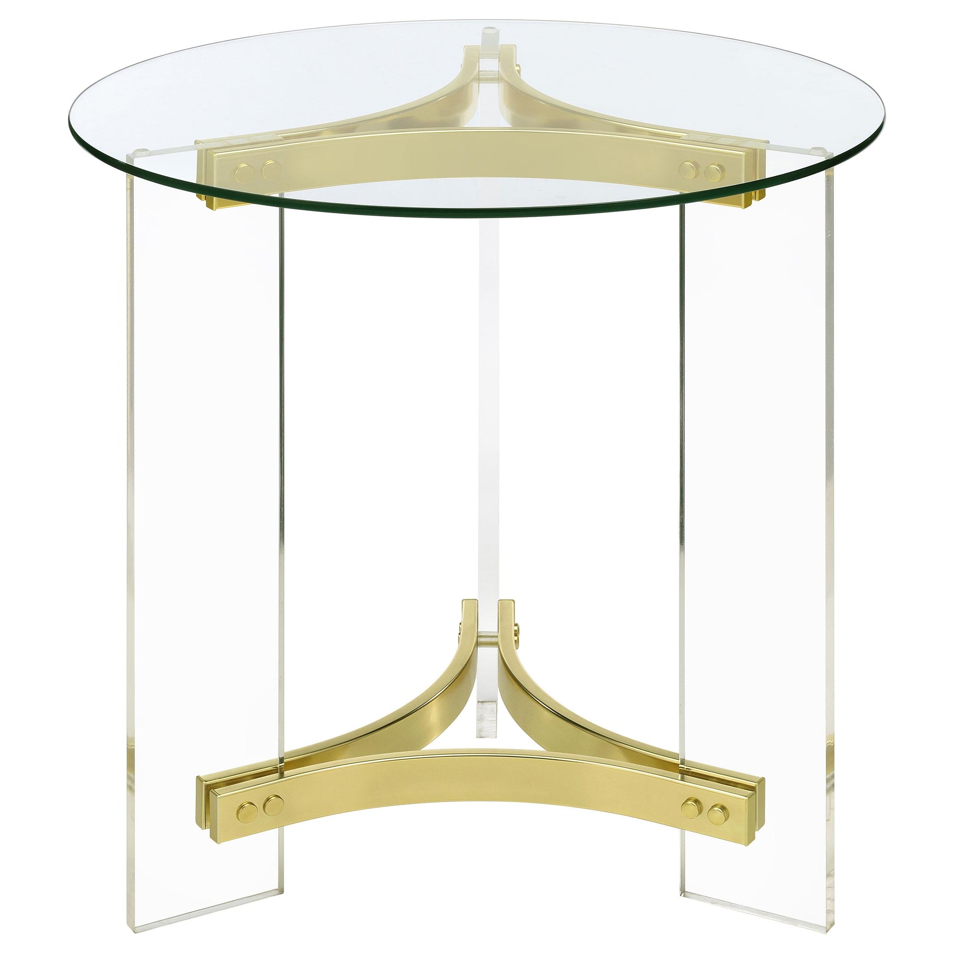 Janessa Round Glass Top Acrylic Leg End Table Matte Brass