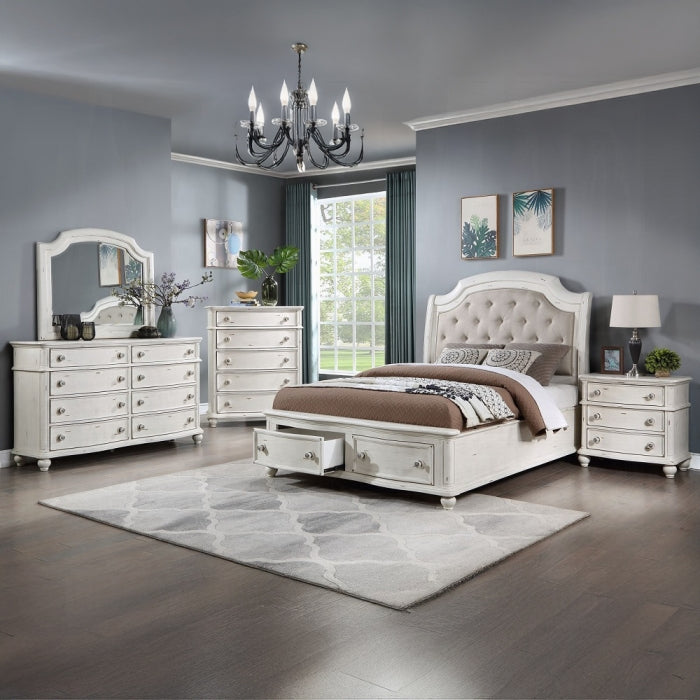 Elevate your daily routine with the Jaqueline Mirror, a dresser mirror designed for the modern bedroom. Its regal silhouette and antique white finish add timeless charm, while the beveled edge creates subtle depth as you get ready for the day.