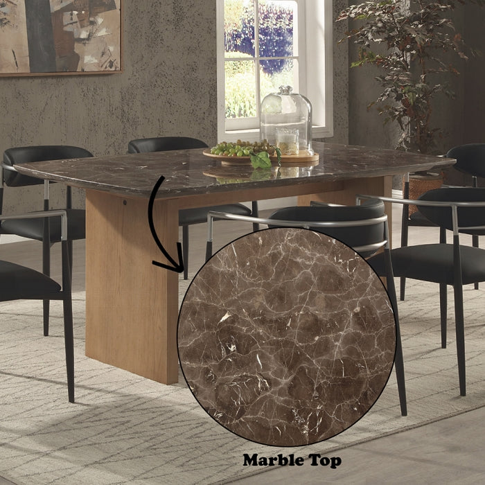Meet the Jaramillo Dining Table: a statement piece for modern dining rooms. Featuring a luxurious marble tabletop and a minimalist profile, it's designed for those who value sophisticated style and everyday practicality. Ideal for intimate gatherings or daily family meals, it elevates any dining space with clean lines and timeless appeal.