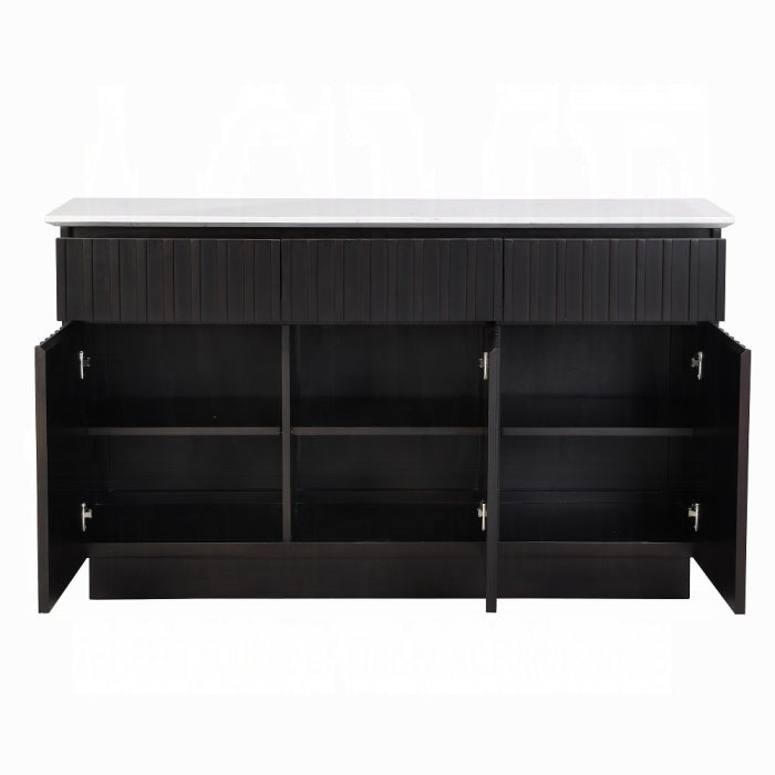 Built to last, the Jaramillo Server uses a sturdy frame and quality materials to withstand daily use. The engineered marble surface resists stains and is easy to wipe clean, while the wood components bring warmth and resilience. With three drawers and three cabinets, you gain ample, organized storage for dinnerware, serveware, or media essentials—keeping spaces neat and accessible.