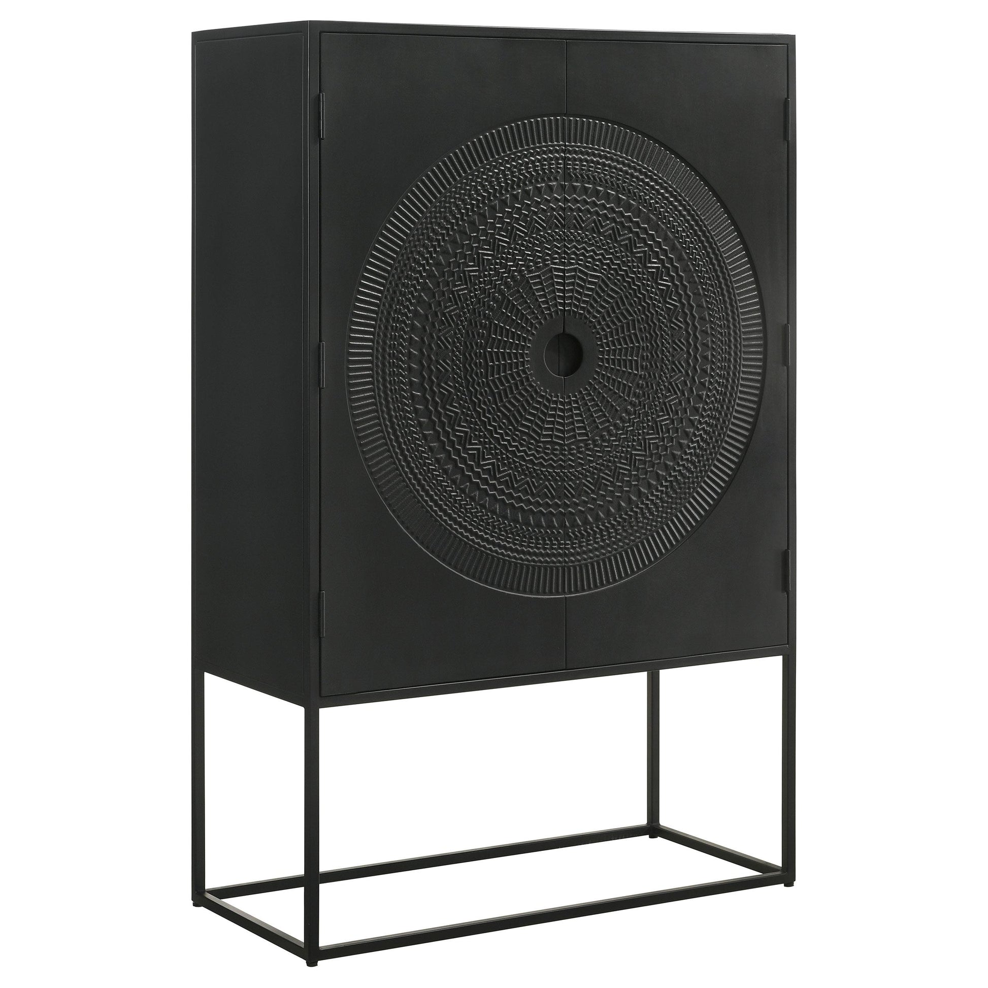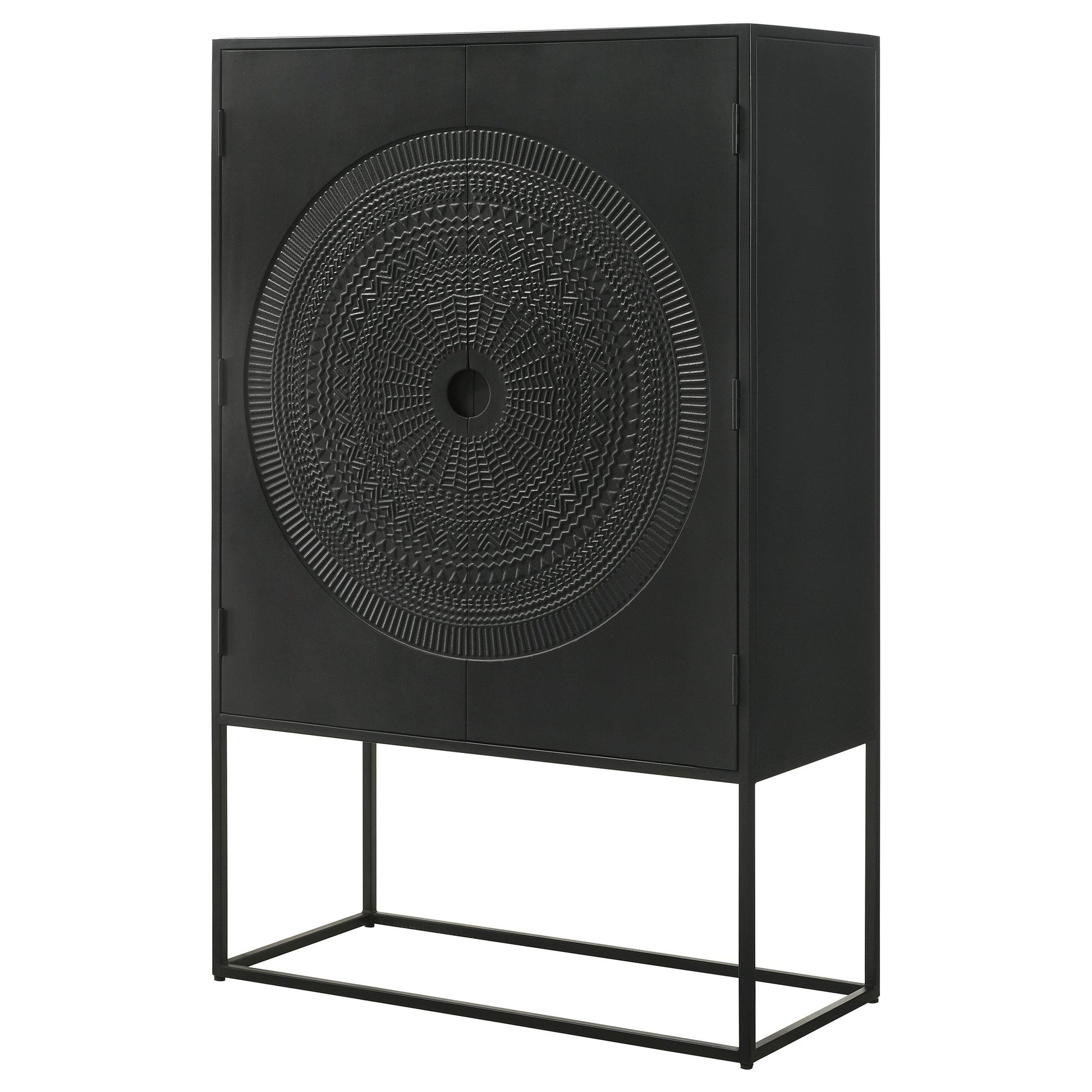Jenna 2-door Mango Wood Mandala Pattern Accent Cabinet Black
