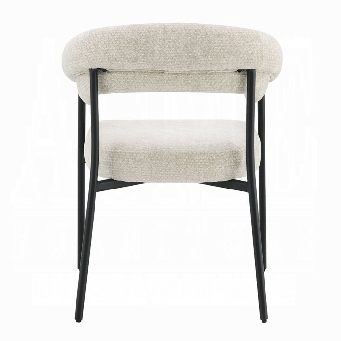 The Jirina Arm Chair set brings modern comfort and versatile style to living rooms, lounges, or spaces that benefit from a pair of inviting seats. This two-chair collection features a refined beige chenille finish paired with black accents for a contemporary look that works with a range of décors.