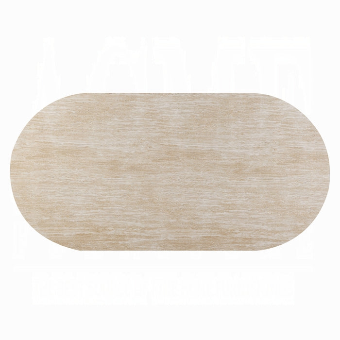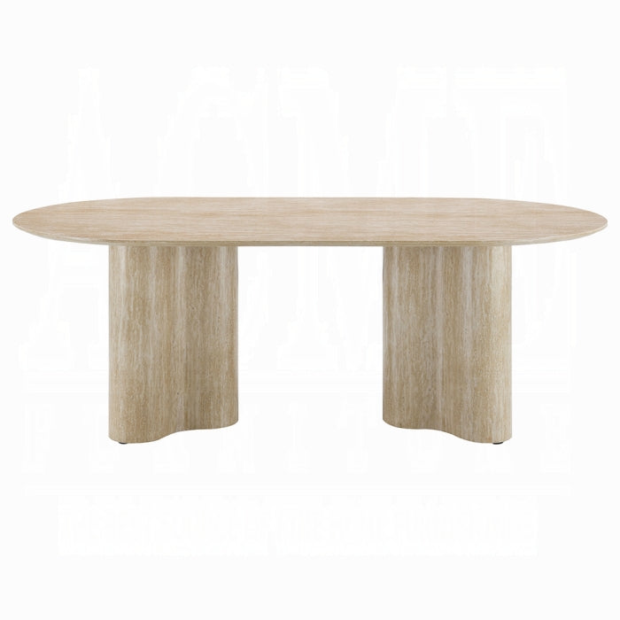 Meet the Jirina Dining Table—a modern, generously sized centerpiece designed for everyday family meals and entertaining. Crafted with a composite wood top featuring a Travertine pattern and a sturdy metal base, it blends clean lines with timeless texture. This 79-inch table is ideal for contemporary dining spaces that value both style and practicality.