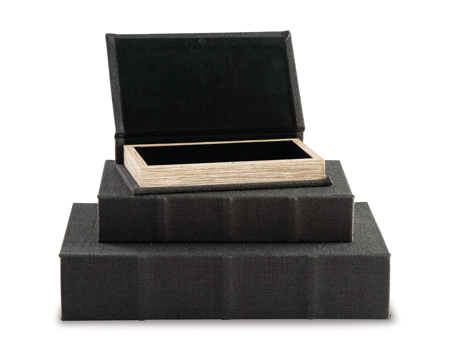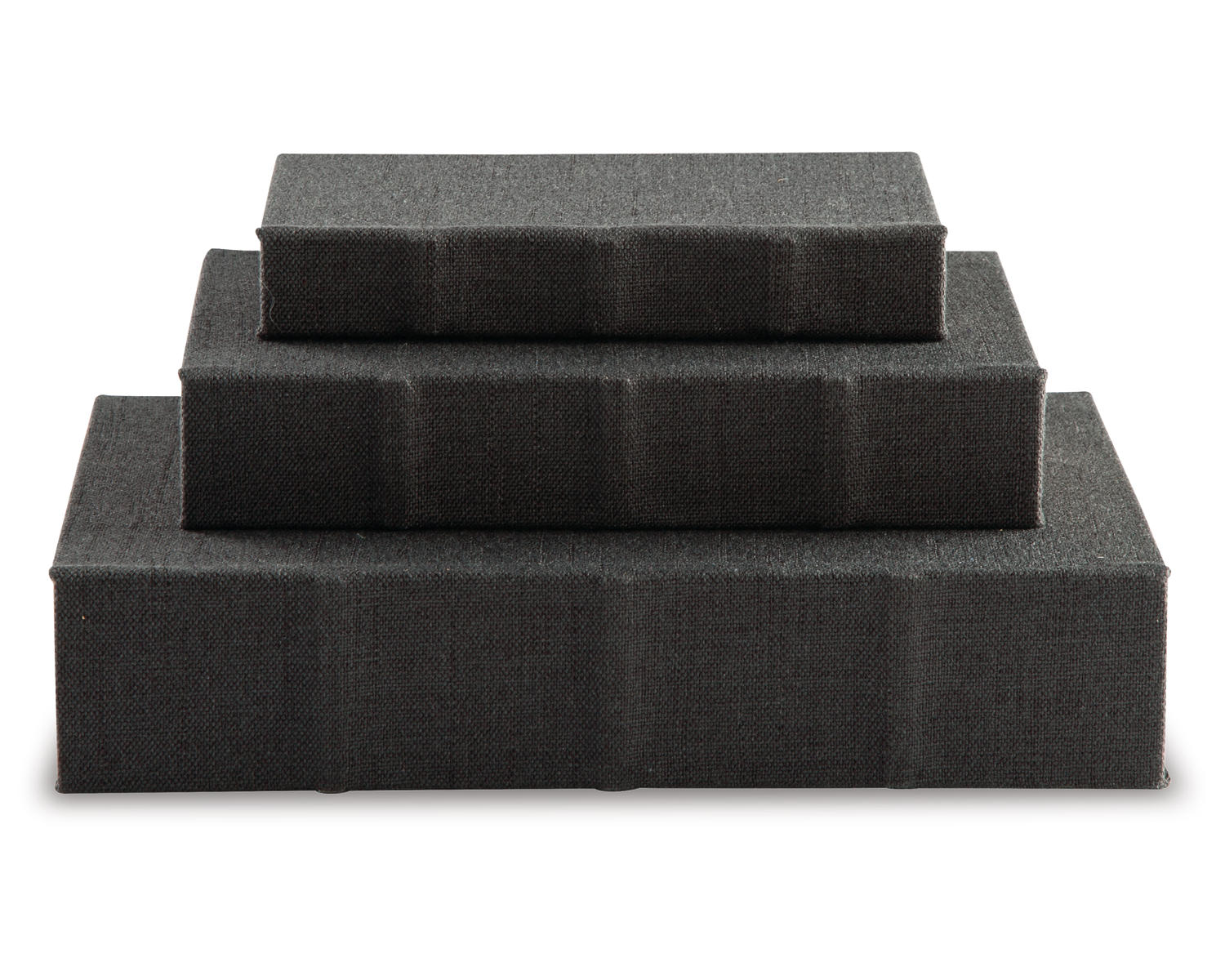 - Set of 3 storage boxes in a sleek Black finish for coordinated organization.