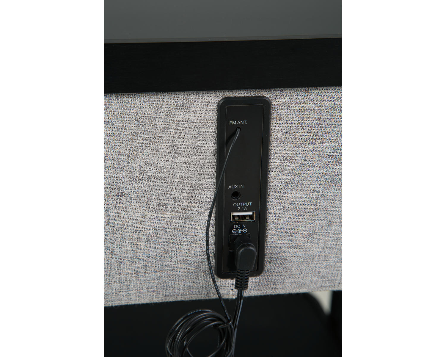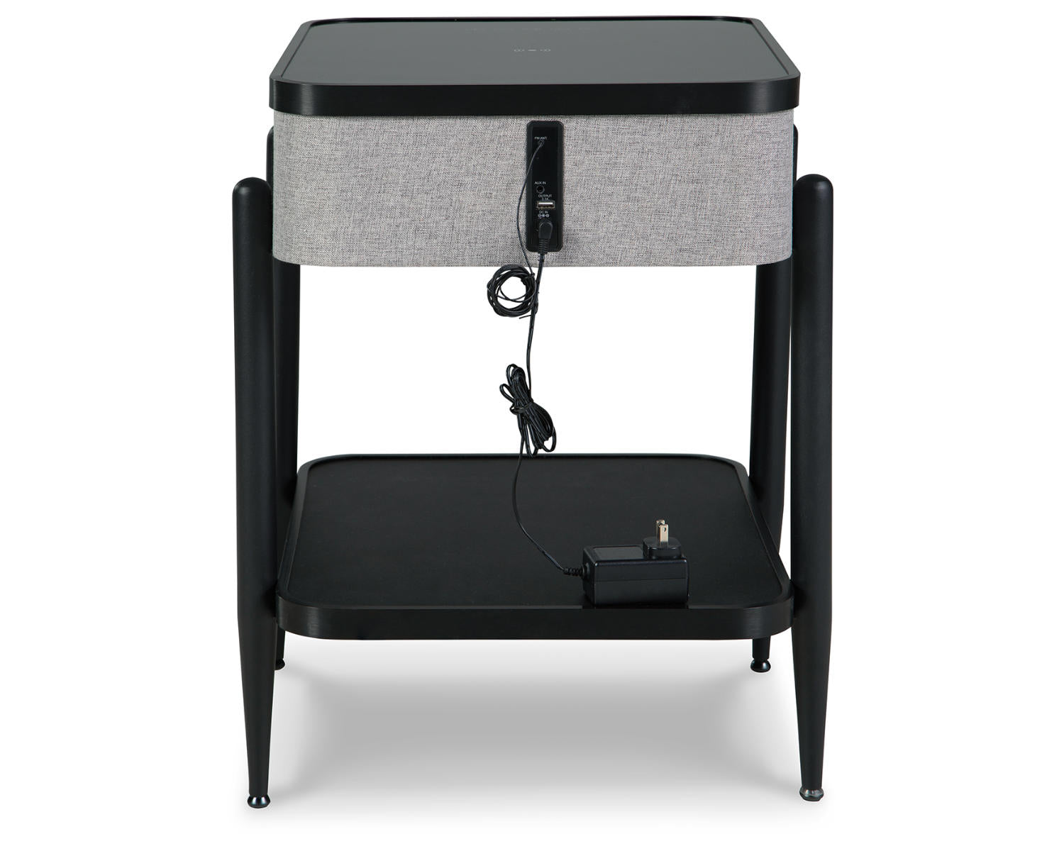 Meet the Jorvalee Accent Table with Speaker, a versatile piece designed for living rooms, bedrooms, or entryways. This Gray/Black accent table blends modern style with built-in audio capability, letting you enjoy music, podcasts, or hands-free audio without adding extra gear. Its compact footprint and clean lines make it a practical and stylish addition to any space.