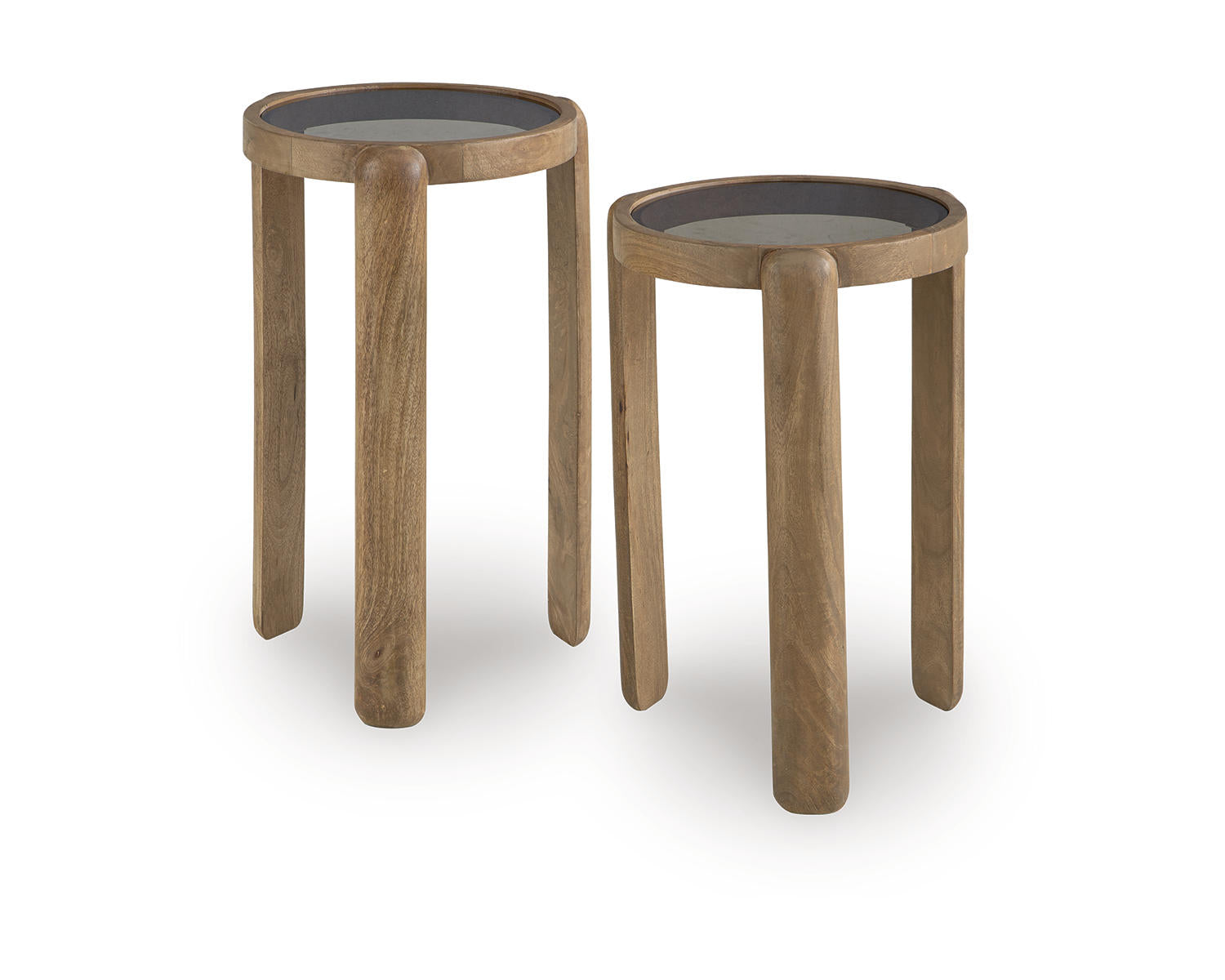 Meet the Jossor Accent Table Set, a pair of compact tables that adds surface space and warmth to any room. Perfect for living rooms, bedrooms, or entryways, the light brown finish brings a timeless touch to contemporary décor. This set of two tables provides flexible, clutter-free styling without overwhelming your space.
