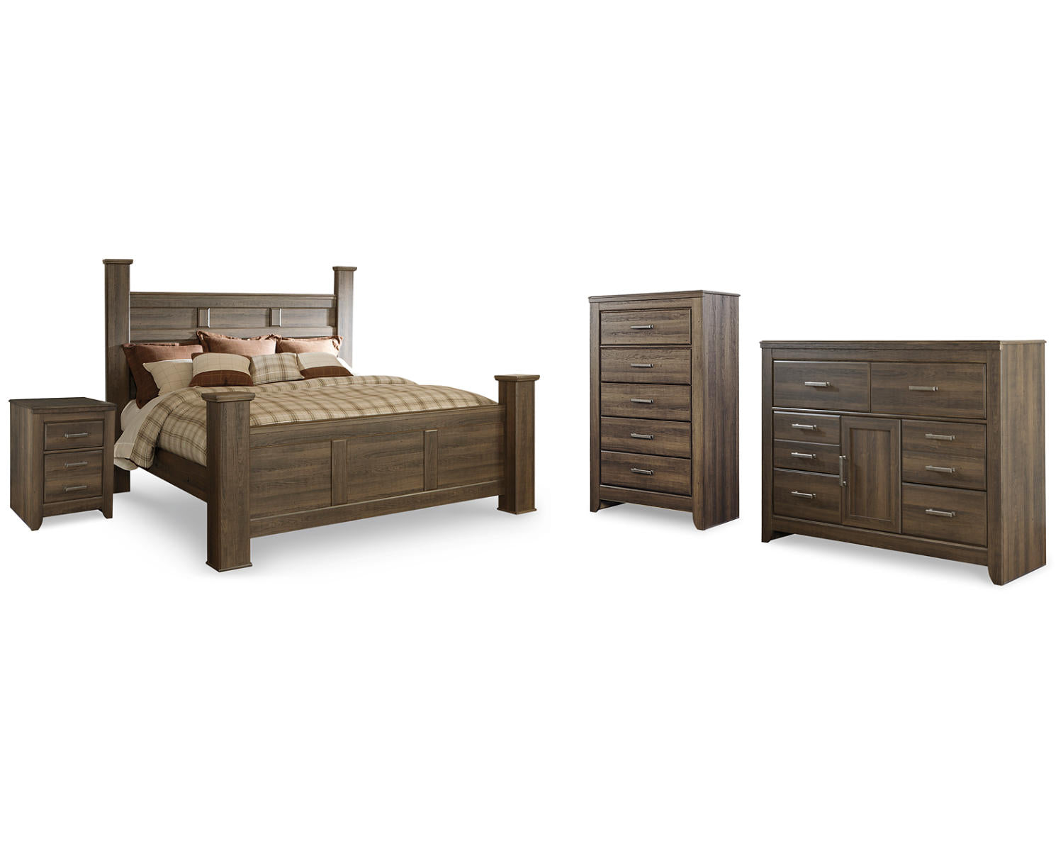 Juararo King Poster Bed, Dresser, Chest and Nightstand