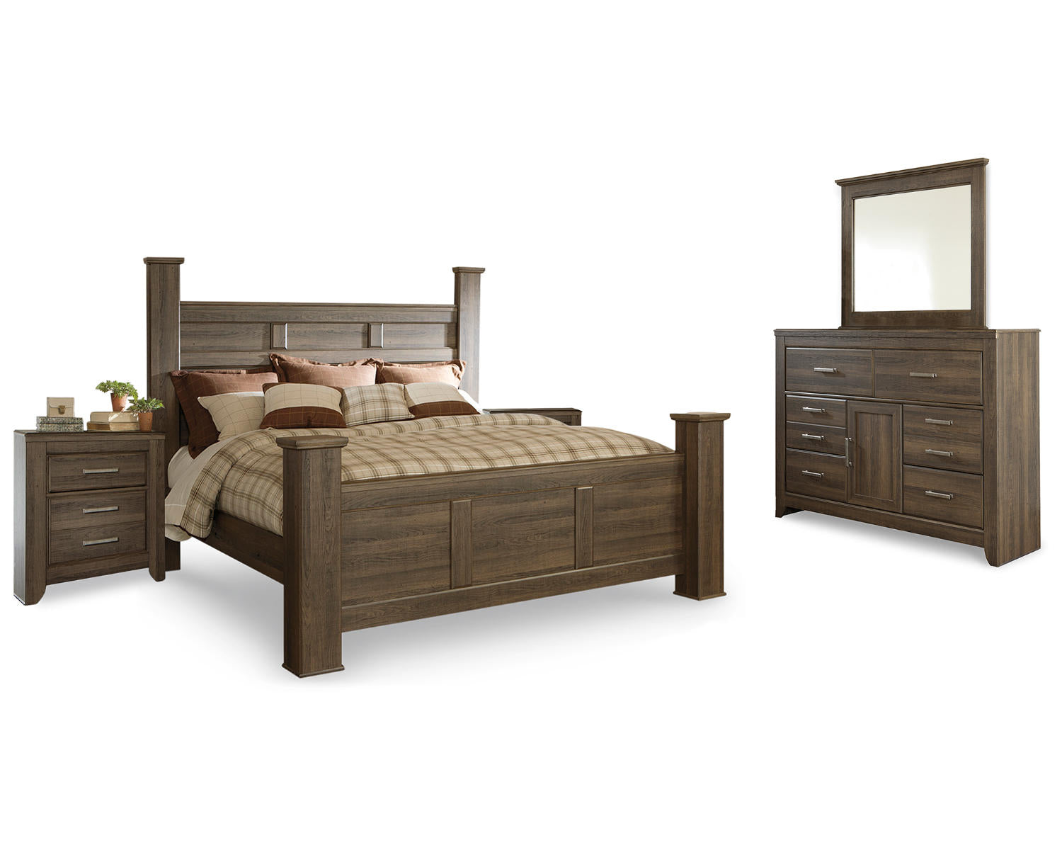 Juararo King Poster Bed, Dresser, Mirror and 2 Nightstands