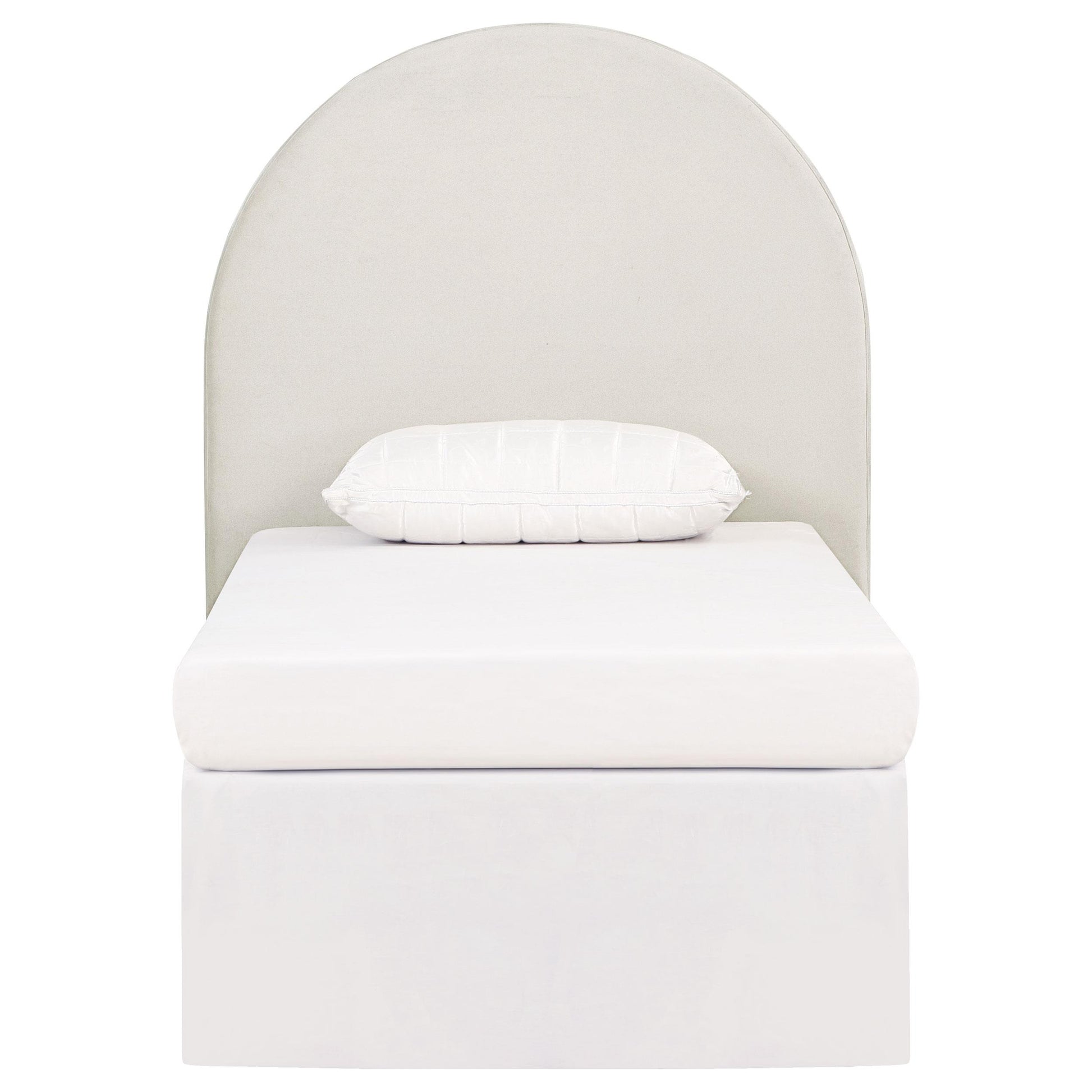 Elevate a twin bed with the June Upholstered Twin Panel Headboard in Ivory. Designed for modern bedrooms, it combines a clean silhouette with soft fabric for a timeless, versatile look. Perfect for guest rooms or master suites alike, it adds a touch of refined comfort to your bedding setup.