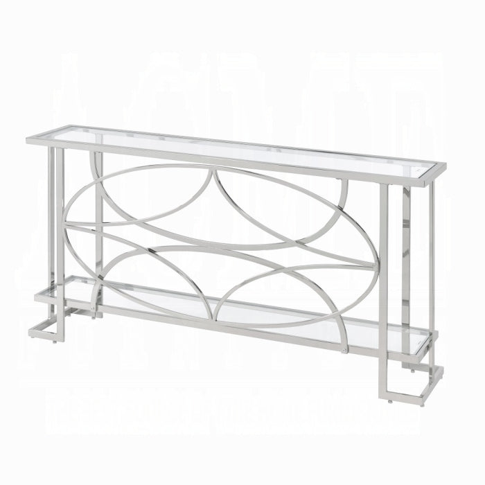 Meet the Kalan Sofa Table, a modern glass-and-silver finished console designed for living rooms and entryways. Crafted with a metal frame and a tempered glass top, this table offers a clean, versatile surface for décor, lamps, or daily essentials. Its wide footprint provides ample space while maintaining an airy profile.