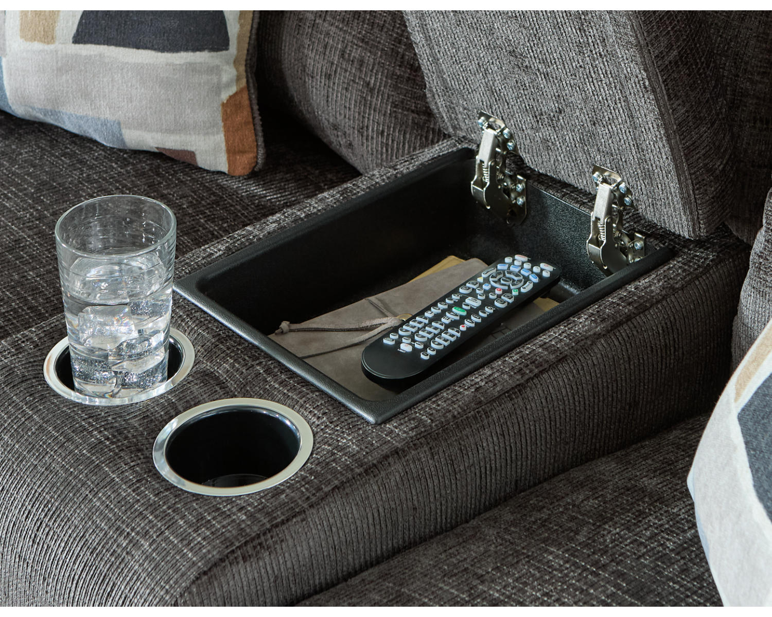 - Reclining loveseat with a built-in console for convenient access to essentials