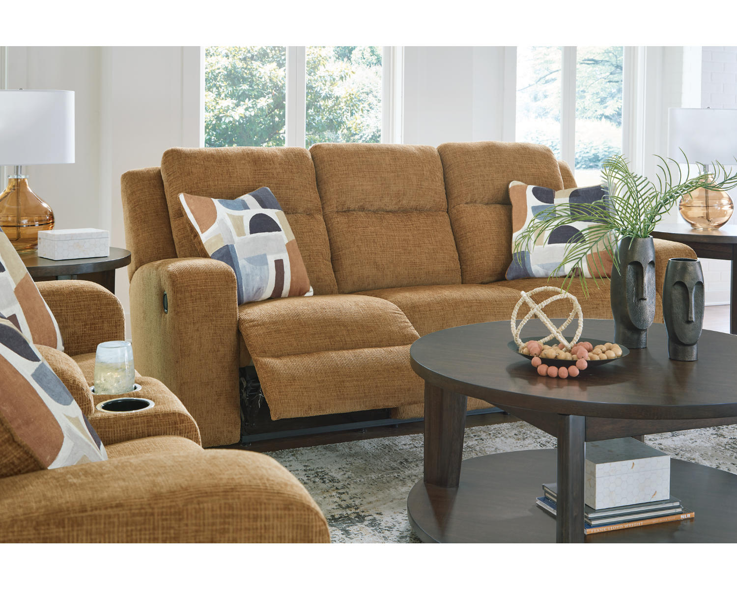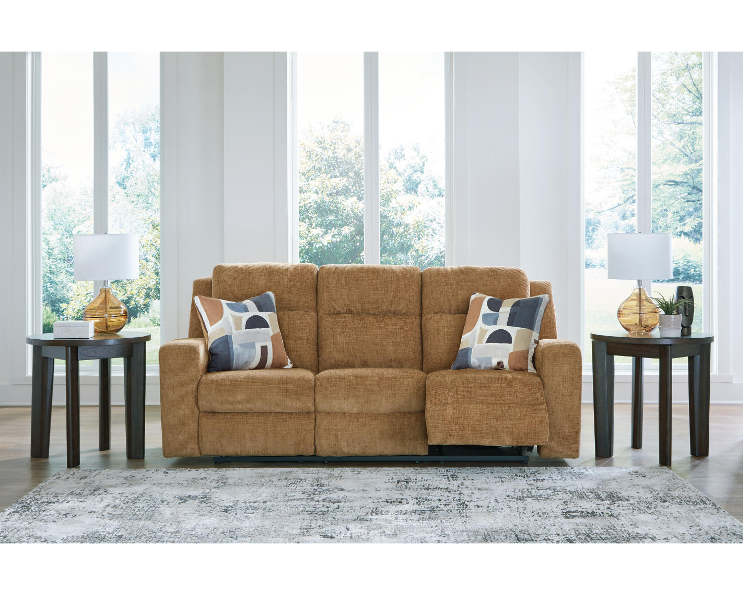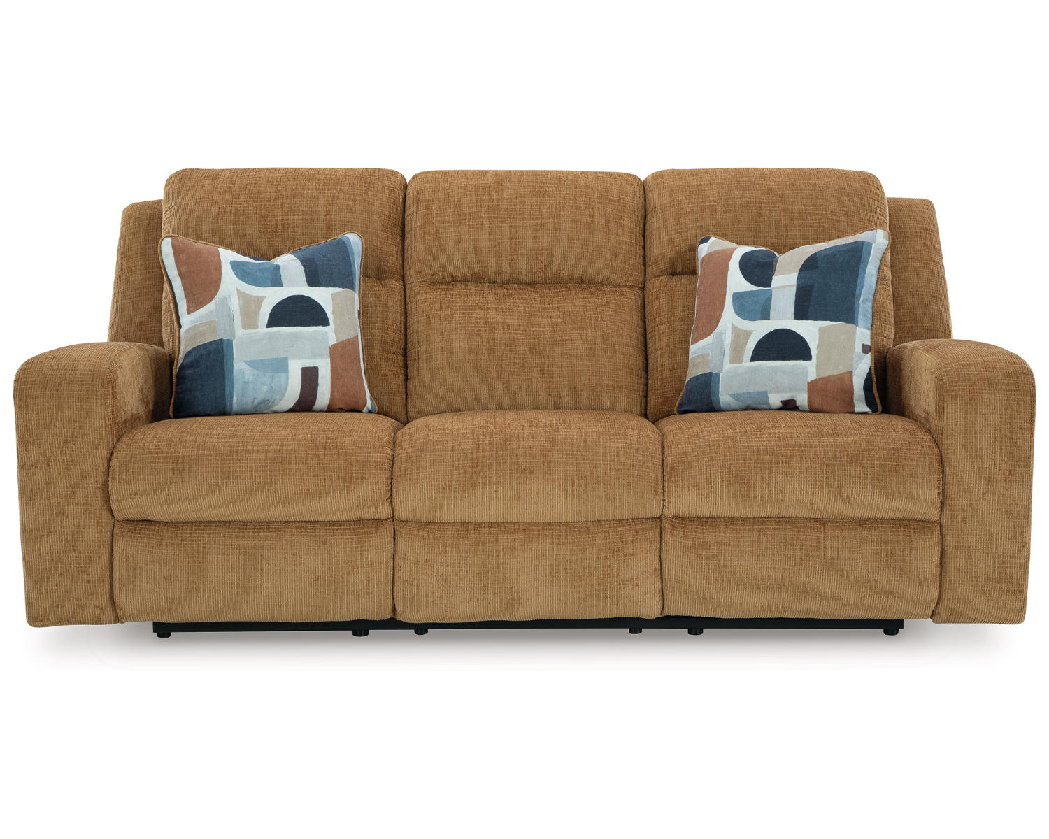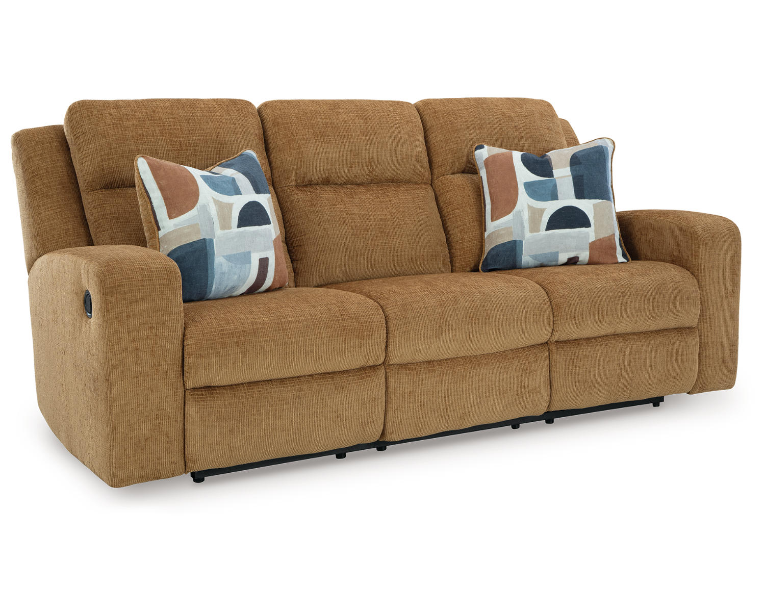 Meet the Kanlow Reclining Sofa in Honey—a versatile centerpiece for living spaces that value comfort and a warm, inviting aesthetic. Ideal for relaxed evenings, movie nights, and casual gatherings, this sofa offers effortless reclining for personalized comfort.