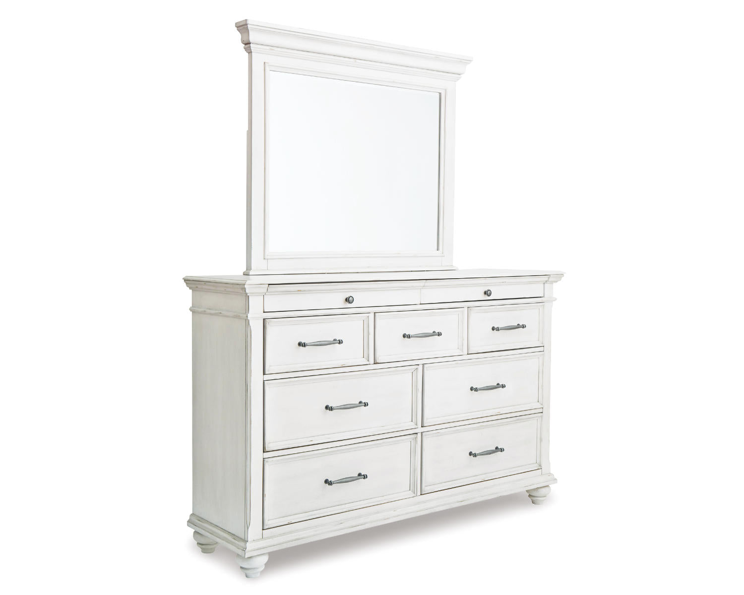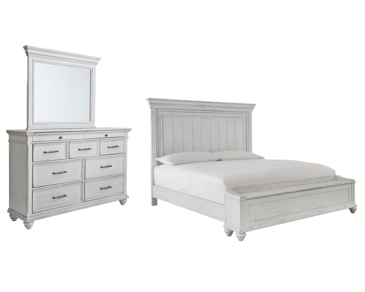 Kanwyn King Panel Bed with Storage, Dresser and Mirror – Whitewash