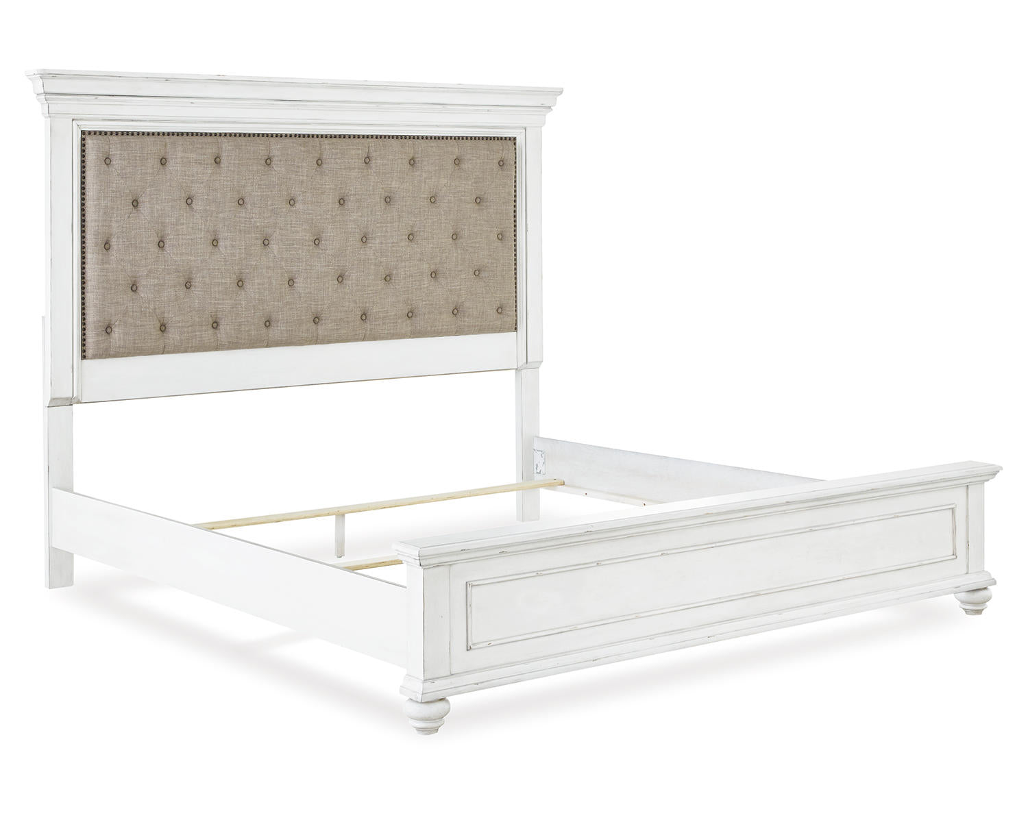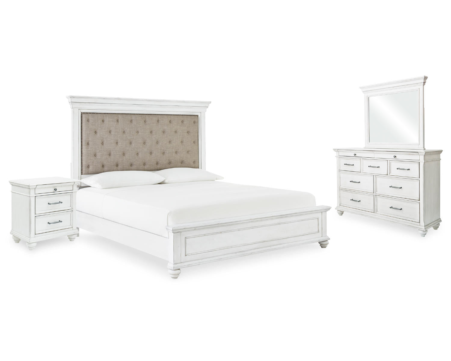 Kanwyn Queen Upholstered Panel Bed, Dresser, Mirror, and Nightstand