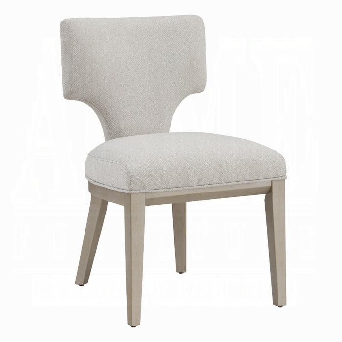 The Kasa Side Chair Set-2 offers a comfortable seat for family meals and gatherings. Each chair features a padded seat and back, with a slightly curved backrest that provides subtle lumbar support. Upholstered in soft linen and finished in a champagne color, these chairs bring plush comfort and refined style to your dining space.
