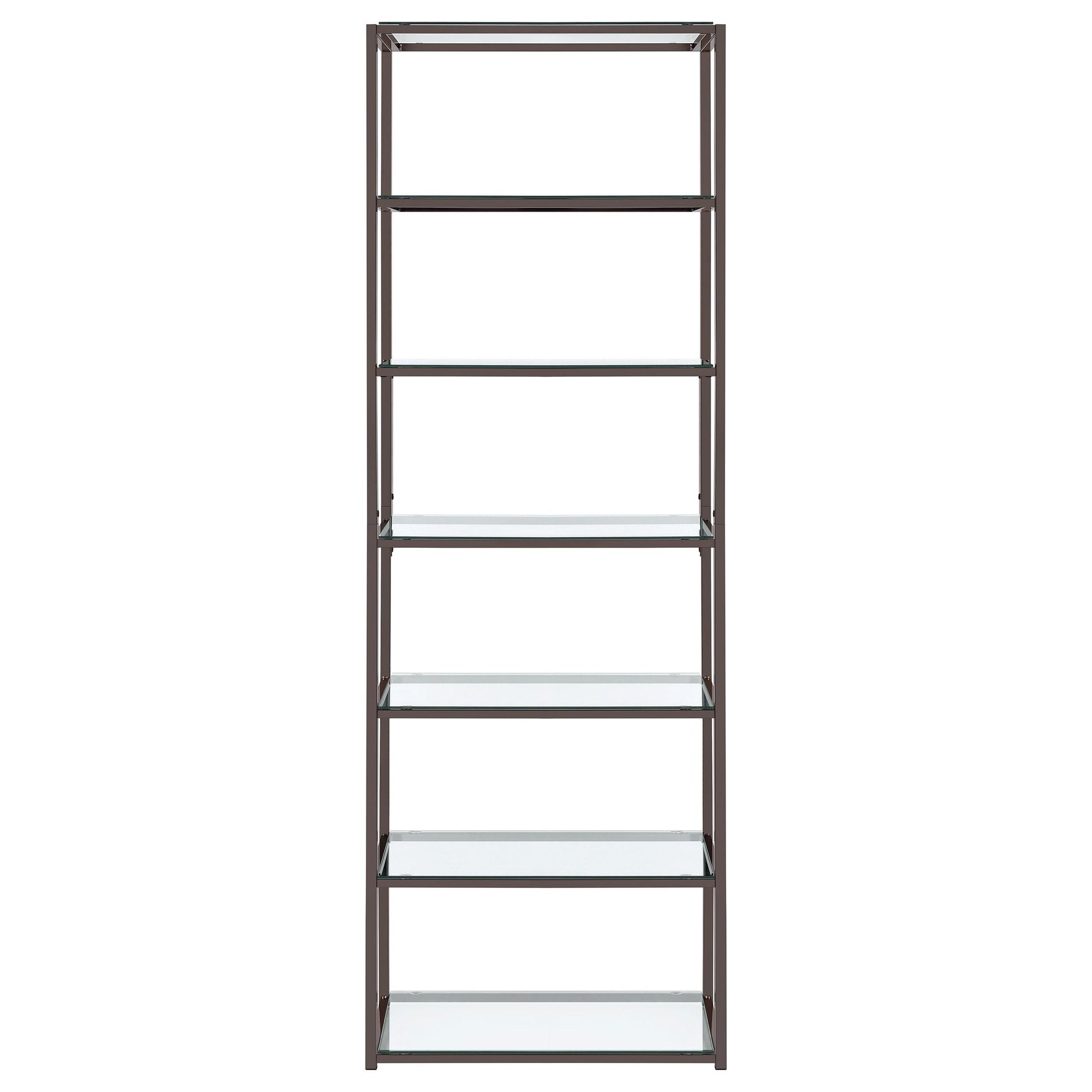 Kate 78-inch 5-shelf Glass Bookshelf Black Nickel